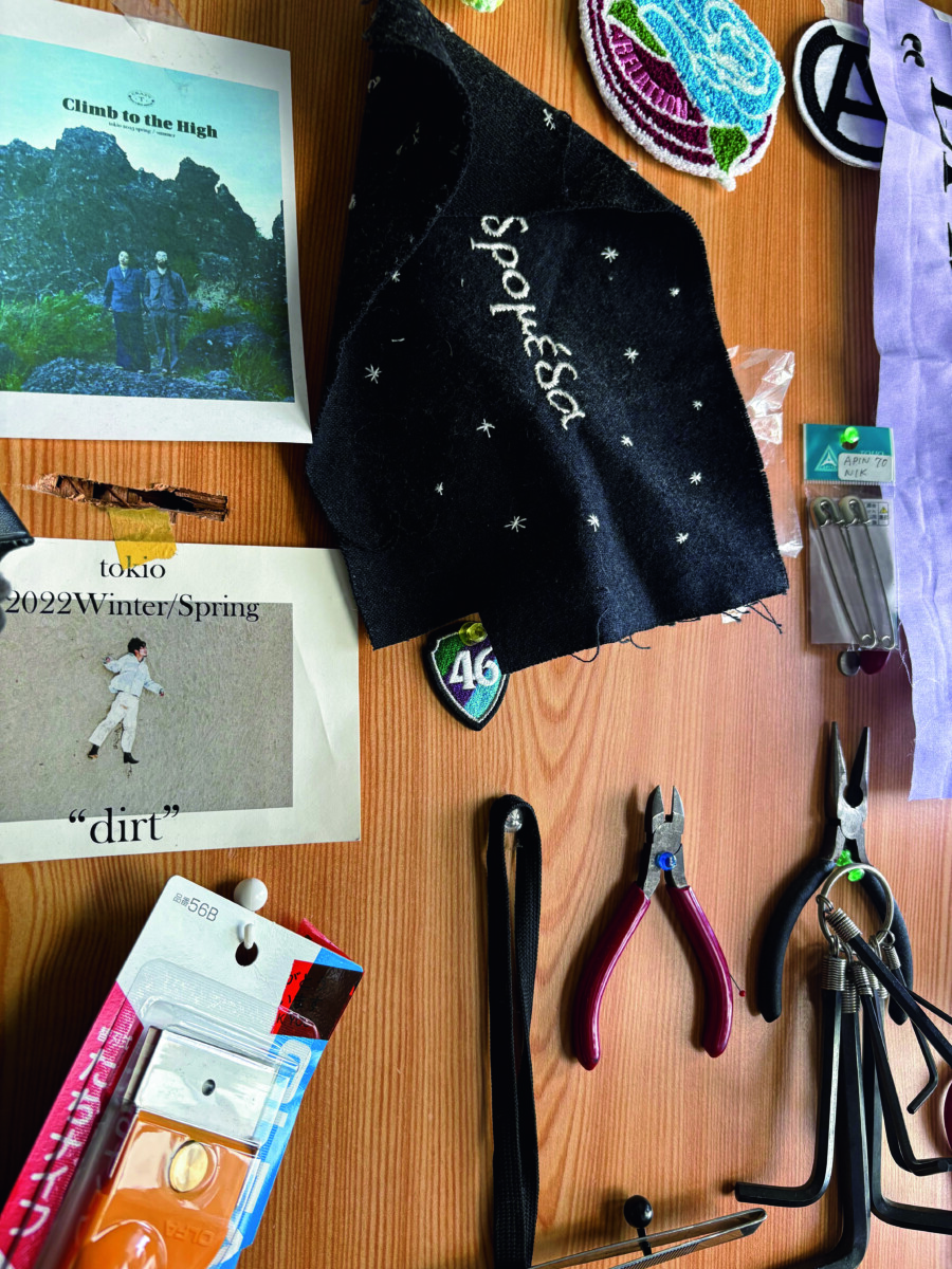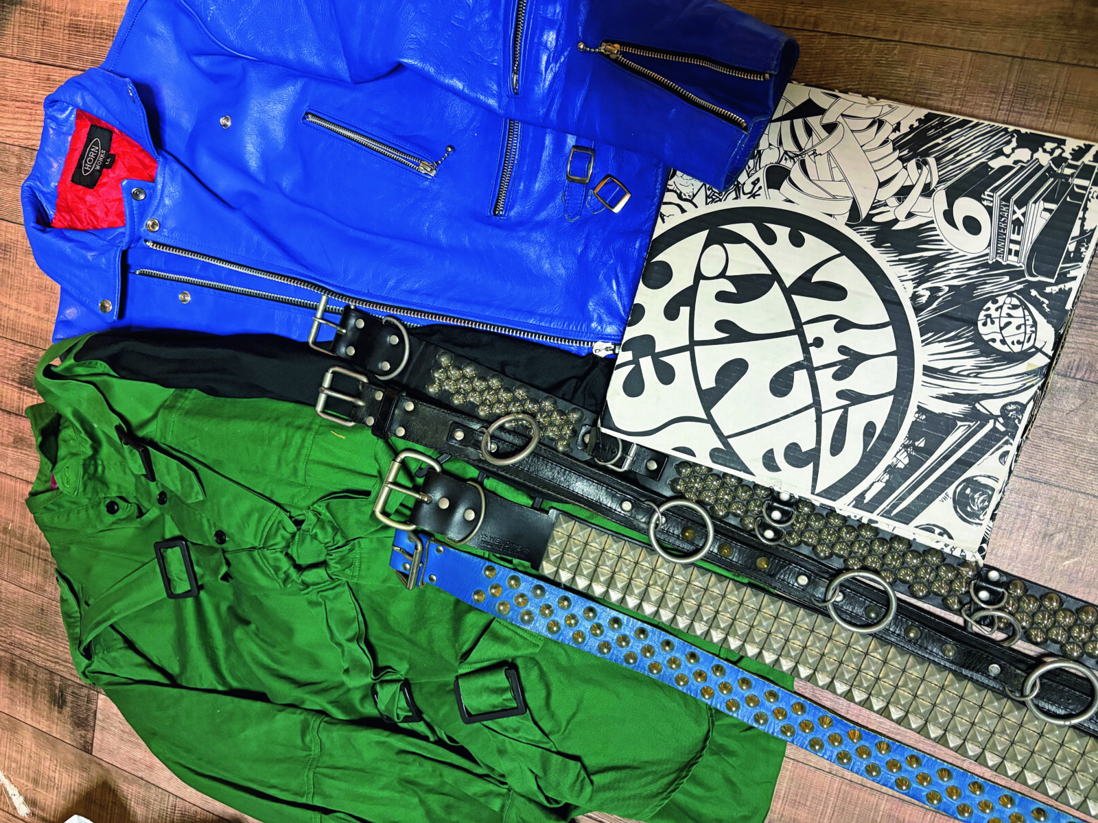 とにかく古着が大好きで、シルエットやデザインの着想を得ることも多いという木村さん。地元の柏で古着店「times HIMITSU club」( @times_himitu_club)も営んでおり、「tokioを知らなくても立ち寄れる場として機能しています。リメイクアイテムも置いているので、古着を通じて僕の世界観が伝われば嬉しいです」と話す。 私物のパンクアイテム。