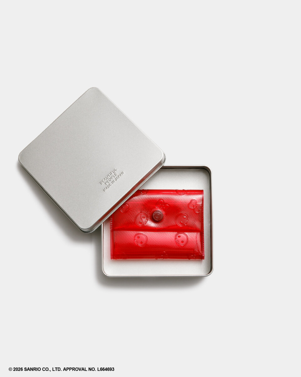 さらに、アクセサリーからはPVC素材を用いた透け感のあるウォレットが登場。こちらはビューティフルピープルの重要なコンセプトのひとつ「nothing to hide」を表現したもので、エンボス加工で施したリボンとドクロ、マイメロディたちの型押しデザインなどがプレイフルな印象を演出する。