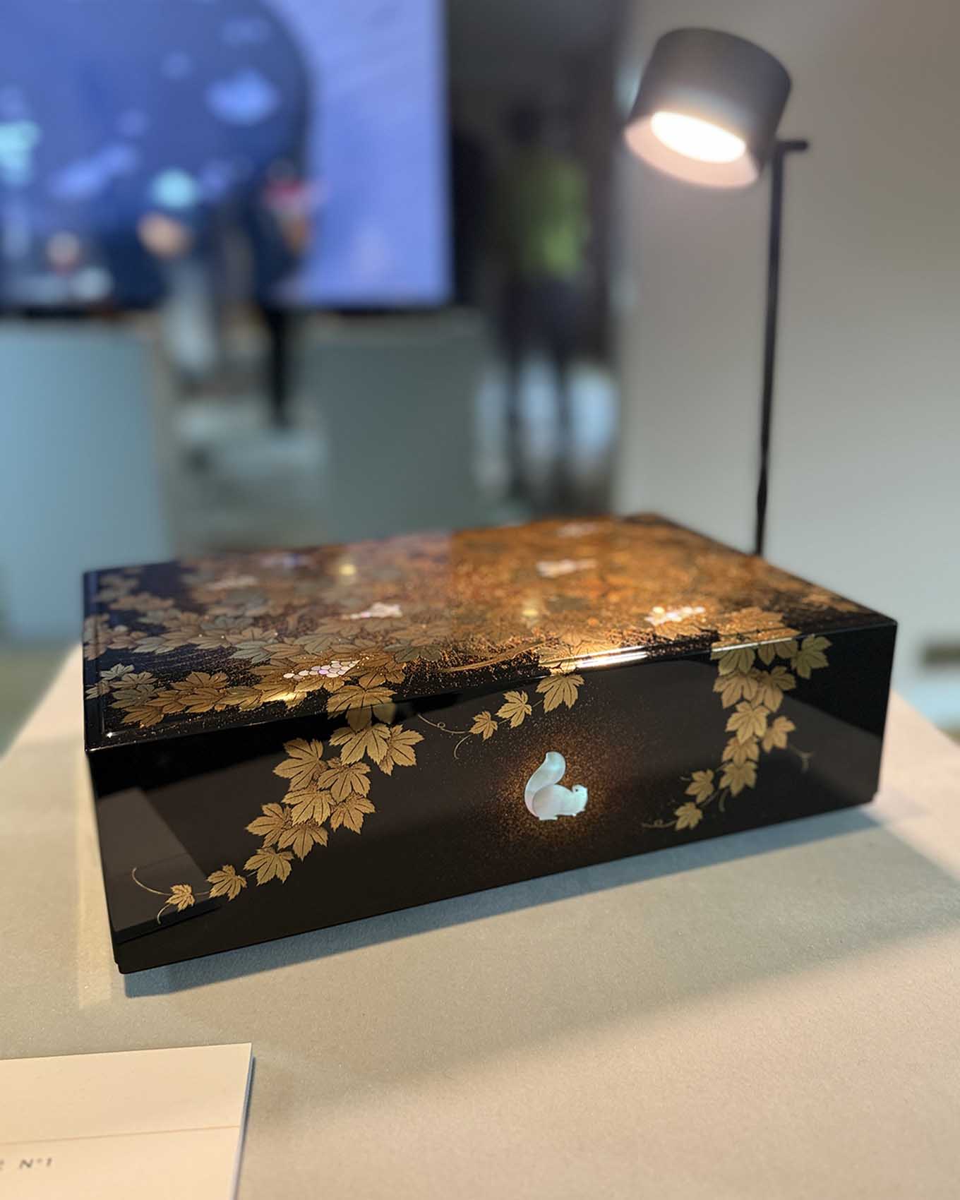 伝統工芸の展示場では、人間国宝の室瀬和美さんによる蒔絵をはじめ、竹工芸、鍛金など、独自性にあふれる作品が陳列。日本の美意識と情熱が吹き込まれた名品の数々が、来場者の関心を集めていました。