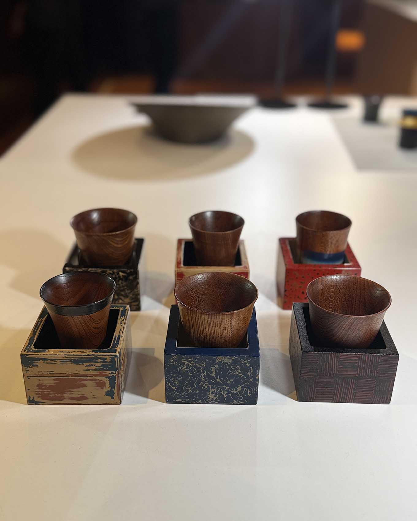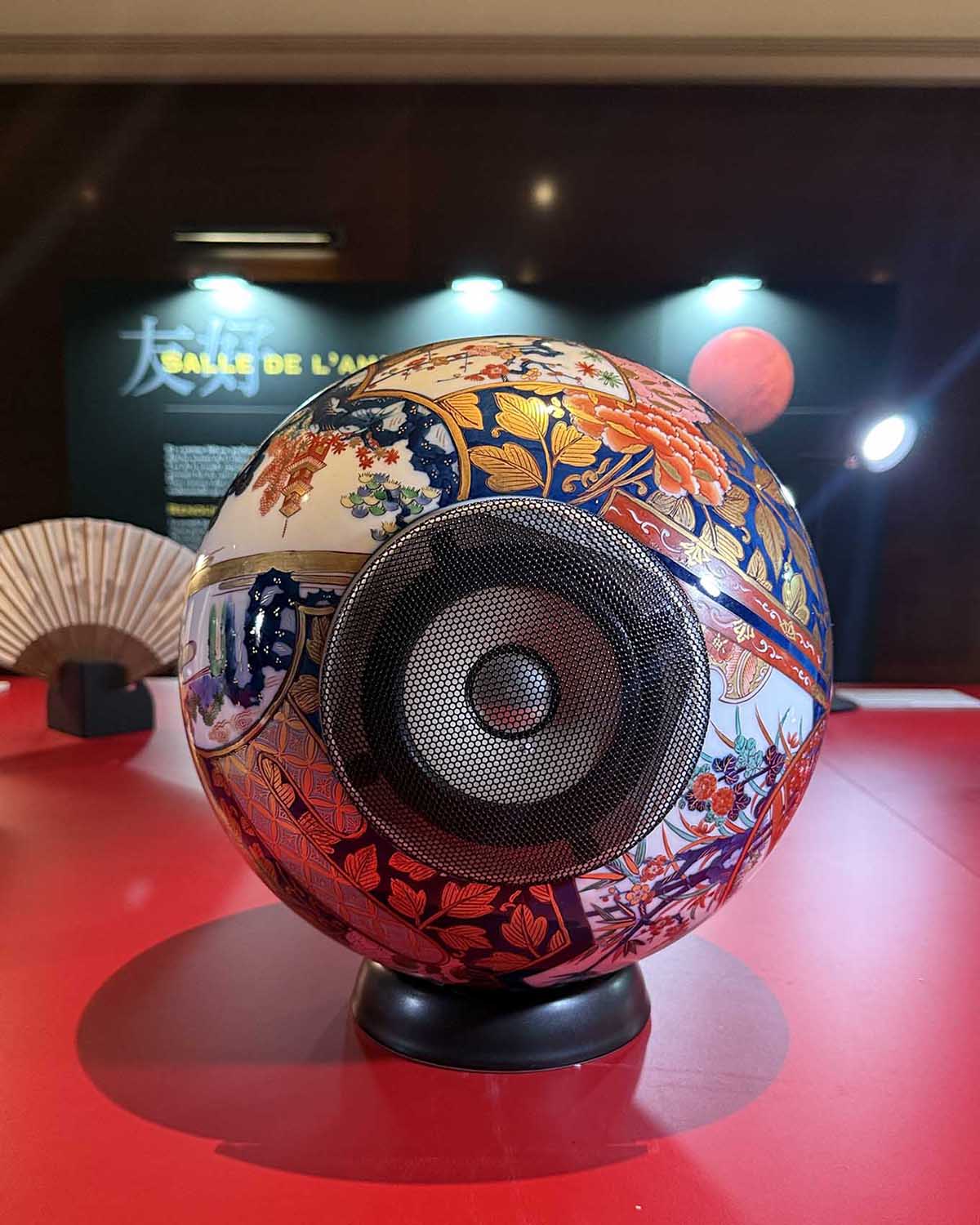 写真上左:室瀬和美さんの蒔絵螺鈿文箱「天恵」。上右:江戸つまみかんざしの技法を用いた藤井彩野さんのアクセサリー。下左:有田焼ヤマトクのスピーカー。下右:松山昇司さんの津軽塗の枡とカップのセット。© B.P.B. Paris