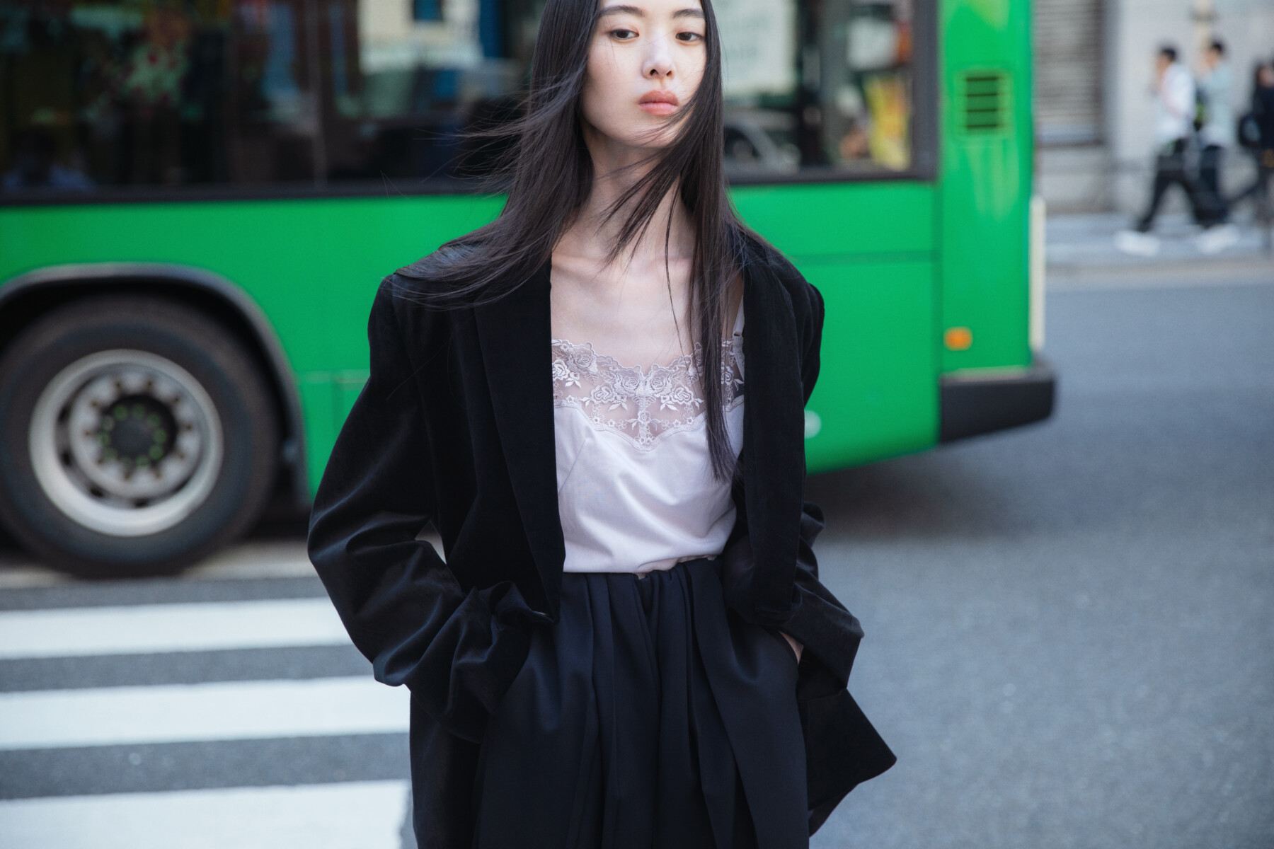 非日常的なエレガンスと、日常生活や社会といった現実世界を繋げることを試みた2025 Fall/Winter Collection。モダンとクラシック、カジュアルとエレガンスといった、一見相反する要素が共存するウェアやアクセサリーは、デイリーにもフォーマルにも楽しむことができる。