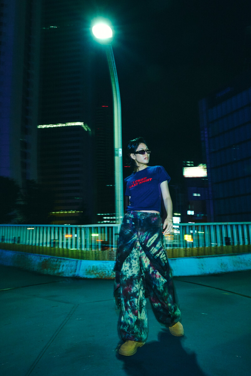 ラインナップは2種類。微生物の力でタンパク質を糸にした「Brewed Protein™︎ファイバー」の裏毛を用いたフーディーとワイドパンツで、カラーリングには東京の夜の街から着想を得たNIGHTと、朝のどんよりとした空をイメージしたMORNINGが展開。