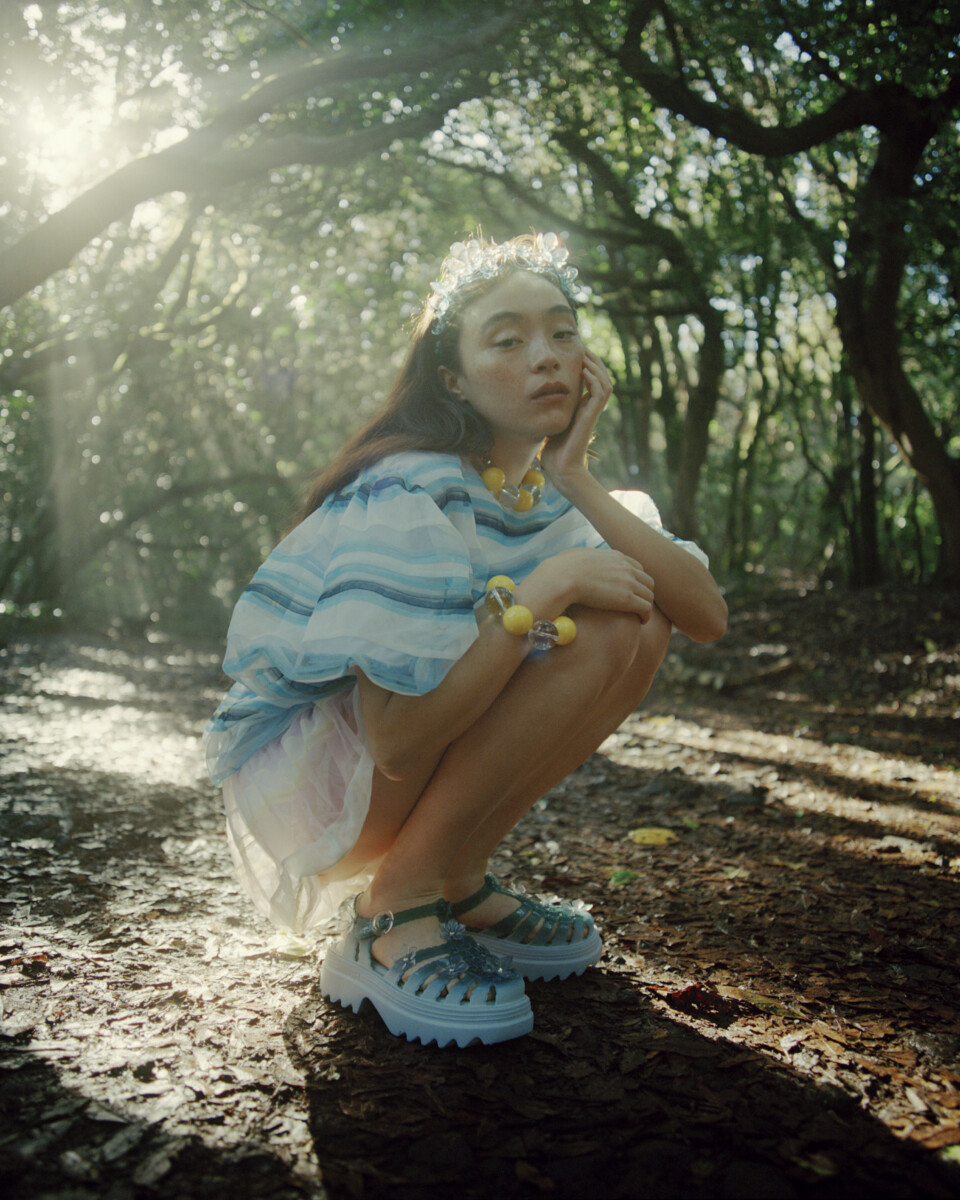 ラインナップは全3型。スタイルによってピンクやブルーをはじめとした計3~4色で展開されており、花から着想したプレイフルなディテールが目を引く「Melissa Luna Bloom」は、その幻想的なデザインとともに、面ファスナーを使用した着脱のしやすさも魅力。