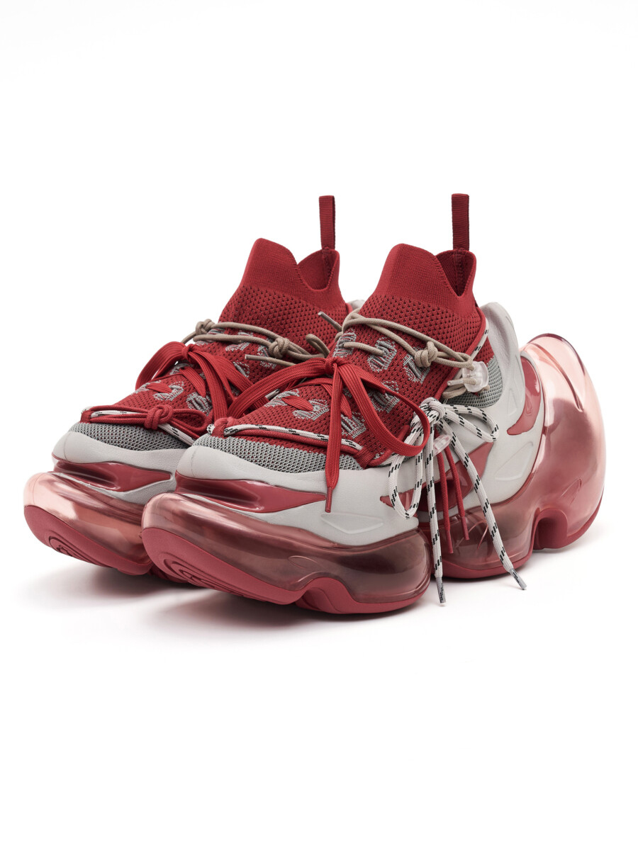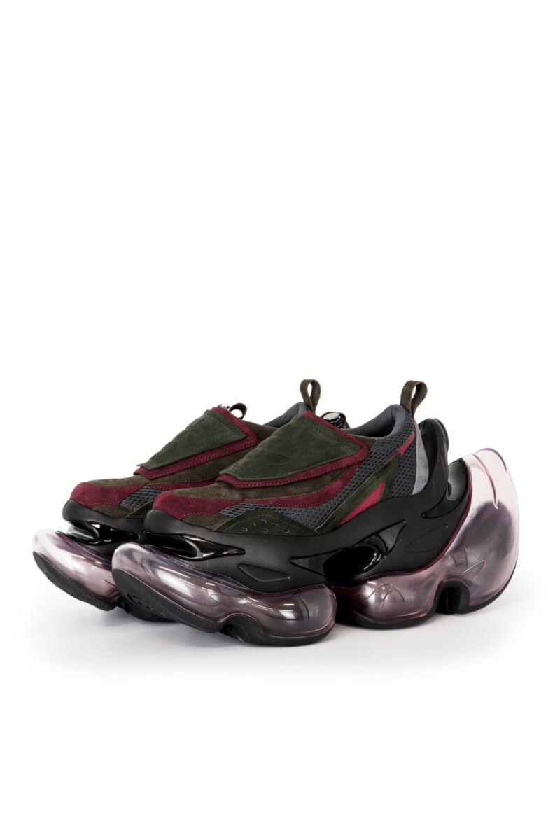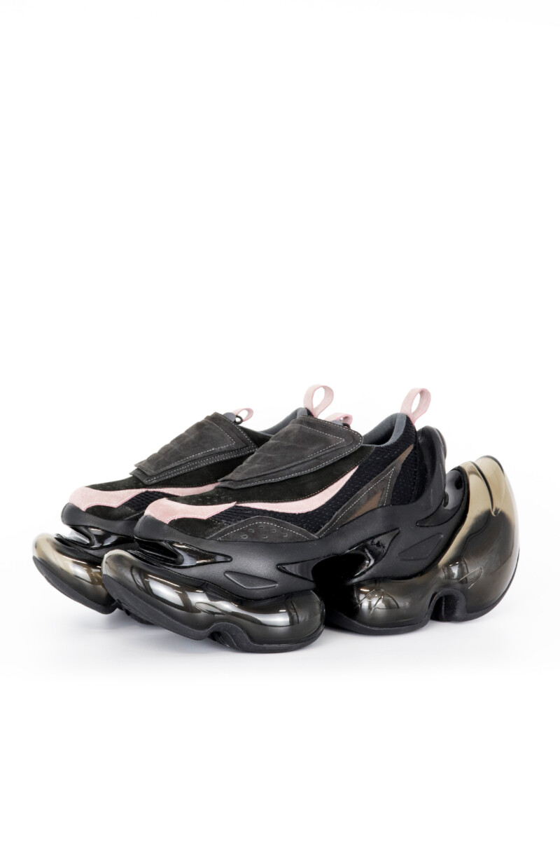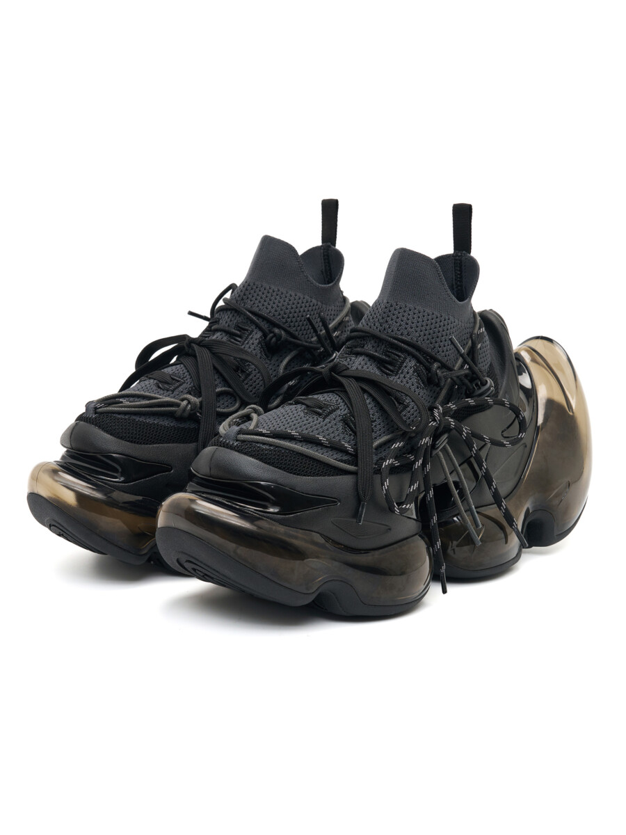 バウンスとは、かかと部分のユニークなフォルムと巨大なシルエットが印象的なアウトソール。インパクト大のデザインも然ることながら、TPU素材やラバーソールを使用したことによる、弾力性や丈夫さに優れた快適な履き心地も特徴的。ソール高は9.5cmで、サイズは37~40で展開される。