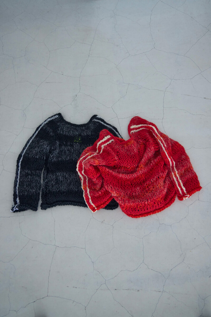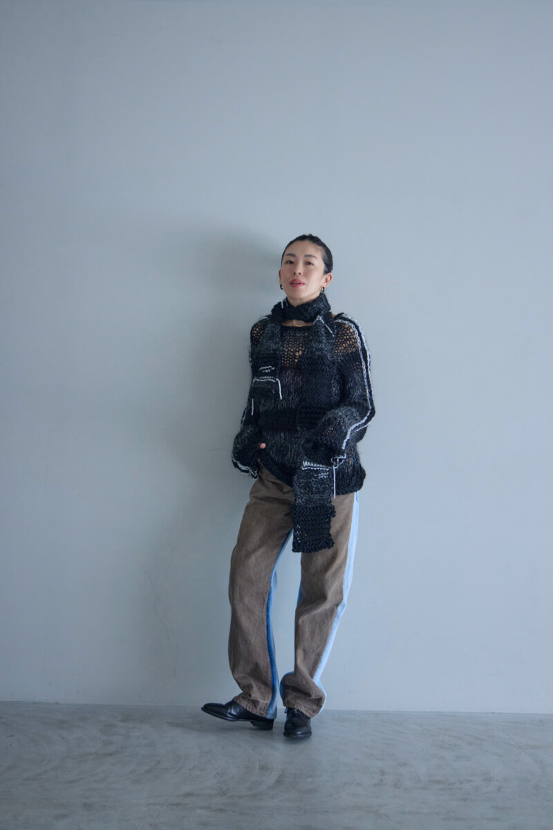素材には、モヘア、ウール、ナイロンリリヤン糸、和紙加工ラメリリヤン糸の4種を使用し、編み地に立体感と変化を生んでいる。オダカの25AWコレクションのムードを引き継ぎつつ、ザニームの提案するデニムスタイルに映えるニットはこれからの季節にぴったり。ユニークなアイテムをぜひチェックしてみて!