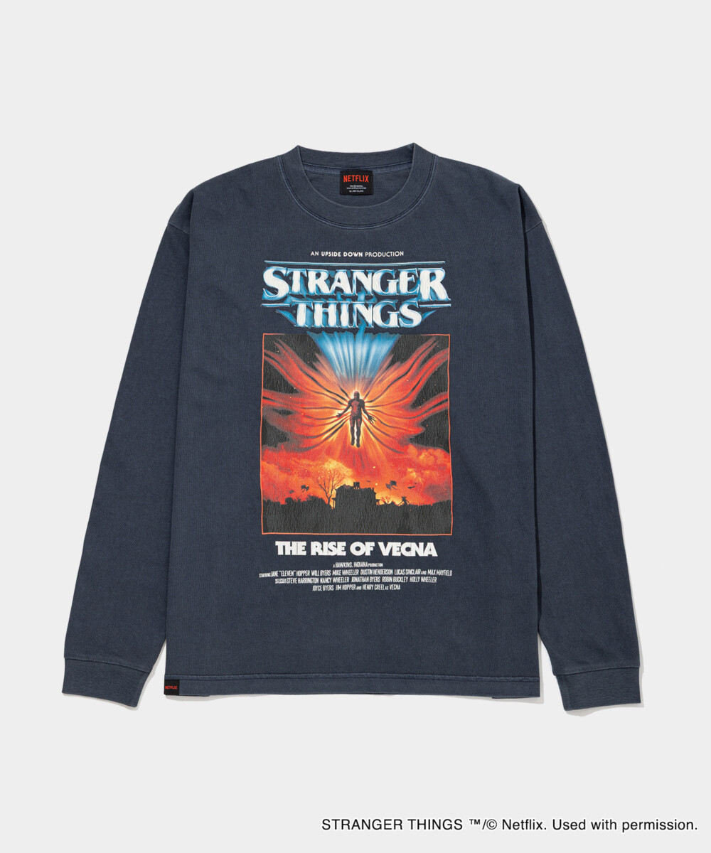ヴィンテージ風デザインが目を引くTシャツ「FRIENDS DON’T LIE TEE」や、本作のシーズン4で主人公たちに立ちはだかるキャラクター「ヴェクナ」が描かれたスウェット「PIGMENT L/S TEE VECNA」なども展開され、原作ファンにはたまらない内容となっている。