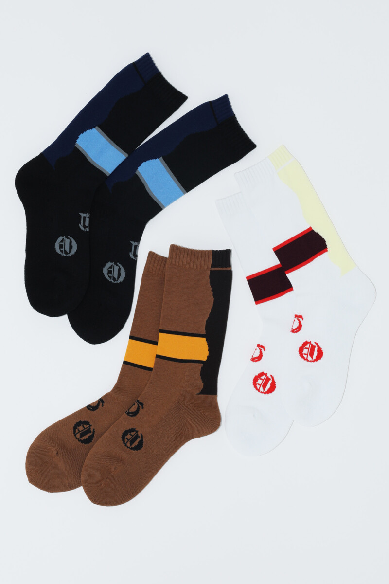 展開アイテムは全4型。カラフルなラインやウェーブ(写真左)とトーテムポール(写真右)がモチーフとなっているアメリブソックスは、ウェアラブルで落ち着いた色味をベースに、プレイフルなグラフィックが目を引くデザイン。
