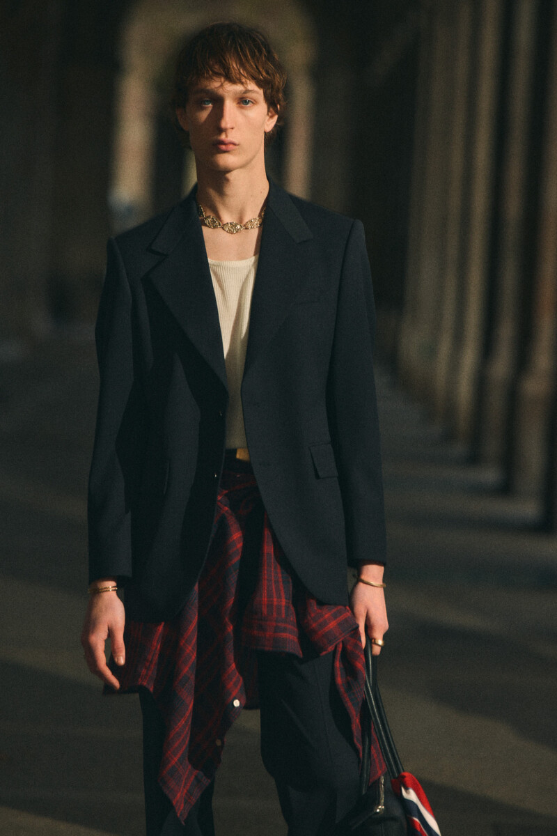 メンズコレクションは、ブランドのシグネチャーであるテーラードジャケットやワークジャケットなど、構築的でありながら快適な着用感を実現したアイテムに、ウォッシング加工を施したヴィンテージムードのワークウェアやデニム、ニットも加わり、充実したラインナップとなっている。