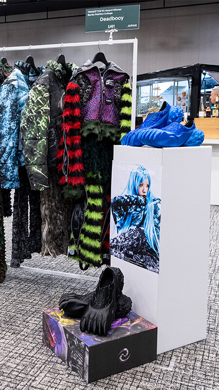TRANOÏ TOKYOの会場には、Rakuten Fashion Week TOKYOでショーを開催した台湾ブランドを中心とする「TAIWAN SELECT」や、ルーマニアから 9 ブランドが集結した「Romanian Designers」、さらには、TRANOÏ TOKYO Awardを受賞した文化服装学院の卒業生が手がけるDeadbooyも参加。国内外のブランドが集まり、それぞれの美意識やものづくりへの姿勢を多角的に提示していた。