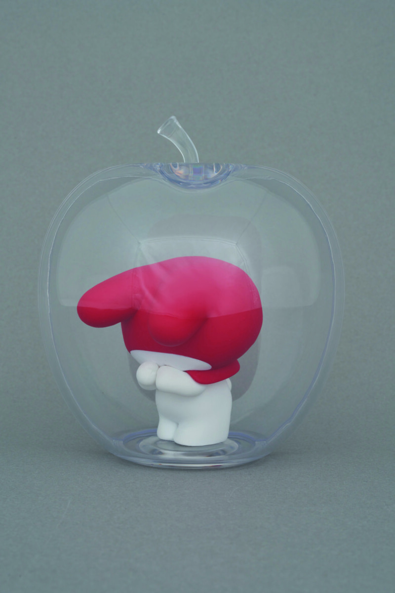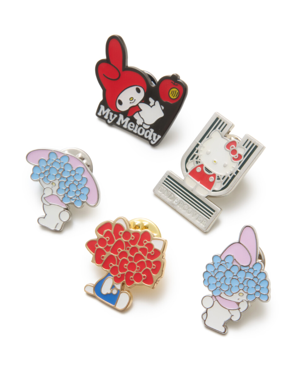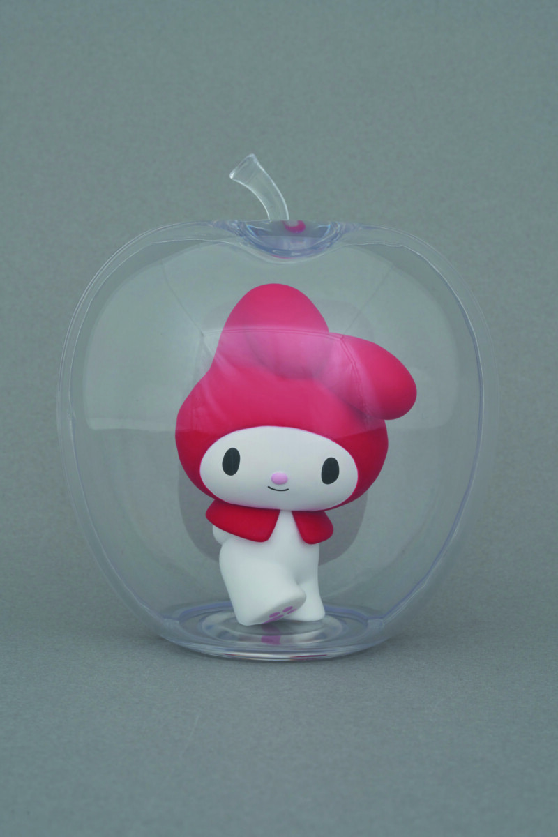 また、人気フィギュアメーカーMEDICOM TOY(メディコム・トイ)とのトリプルコラボレーションアイテムも登場する。透明なリンゴ型ケースに入ったマイメロディのフィギュアや、UNDERCOVERのシグネチャーであるアップル“GILAPPLE”を手にしたハローキティのアーカイブキーホルダーなど、各2種類を展開。
