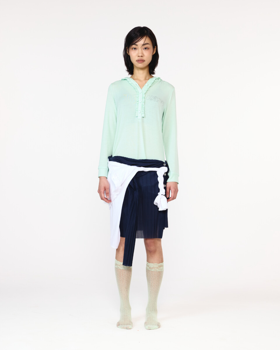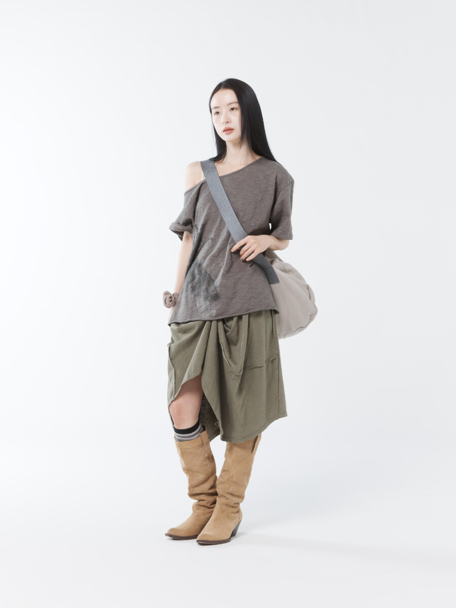 今シーズンは、デザイナー自身がオーストラリアで目にした風景や抱いた感情などをインスピレーション源に、カジュアルなアイテムを数多くラインナップ。グレーやカーキのシックな色合いながら、フェミニンな雰囲気を纏わせたカットソー、マウンテンパーカー、フーディー、スカートなどを展開する。