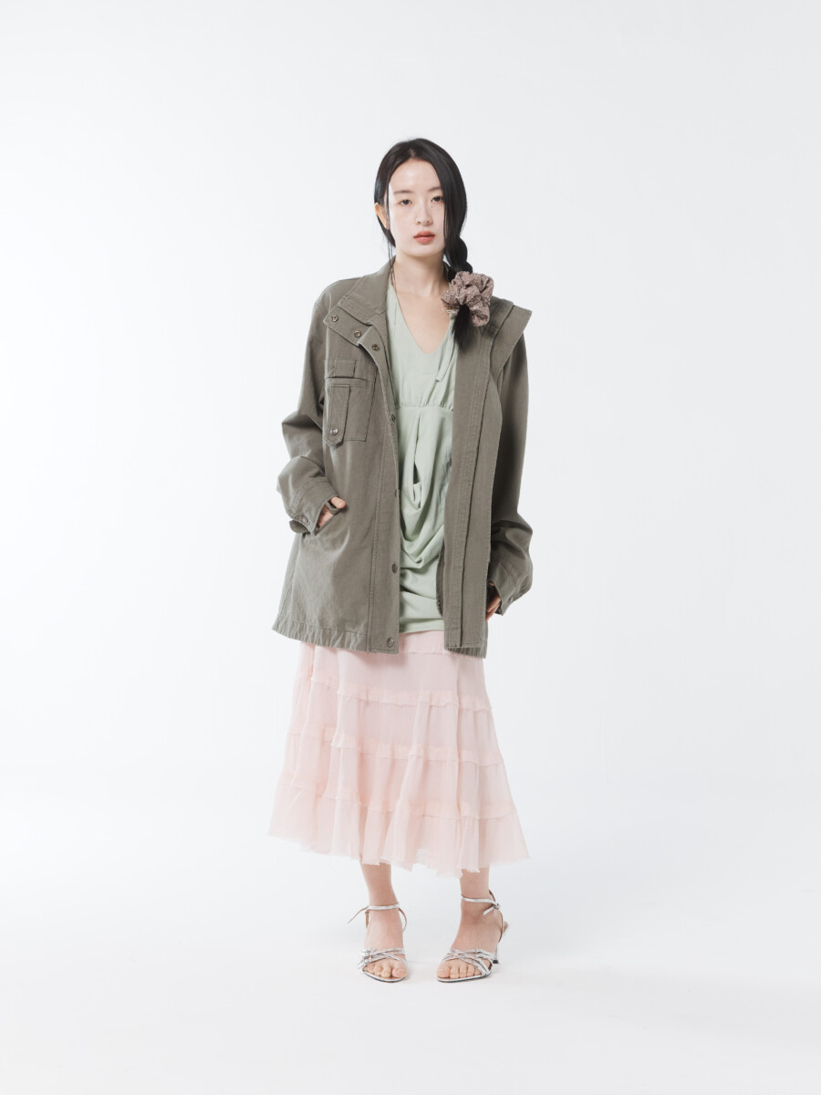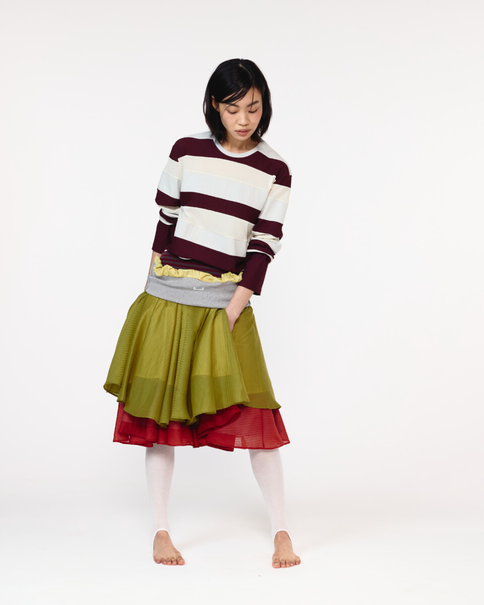 2001年公開の映画『バニラ・スカイ』から着想を得たという今シーズン。洋服を通じて夢と現実の間で揺れ動く自己のあり方を表現し、コレクションを象徴するトレンチコートをはじめ、色彩豊かなブラウスやハーブパンツなど幅広いジャンルのアイテムを展開する。