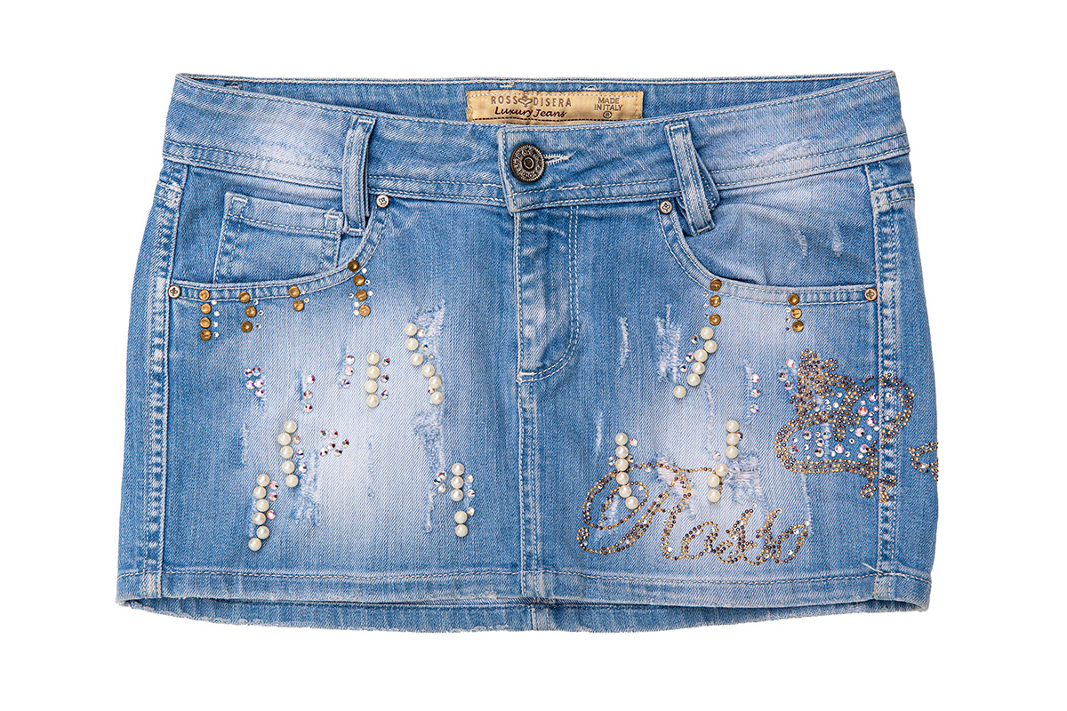 ビジューやラインストーン、パールで装飾された、マイクロミニ丈のデニムスカート。「全体に施されたダメージと煌びやかな装飾のバランスが素敵です。ギャルっぽさもにも惹かれます」(shogoさん)