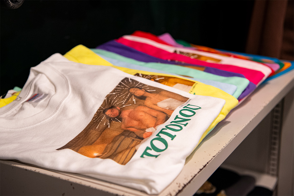 店内に並ぶのは、フーディーやスウェット、デニムなどのカジュアルウェアを中心に、アクセサリーや雑貨類も含めた、幅広いジャンルのアイテム。中にはshogoさんの銭湯好きが高じて商品化に至ったという「TOTONOU」プリントのオリジナルTシャツなども販売されており、そのユニークなラインナップに惹かれて来店するファンが後を絶たない。