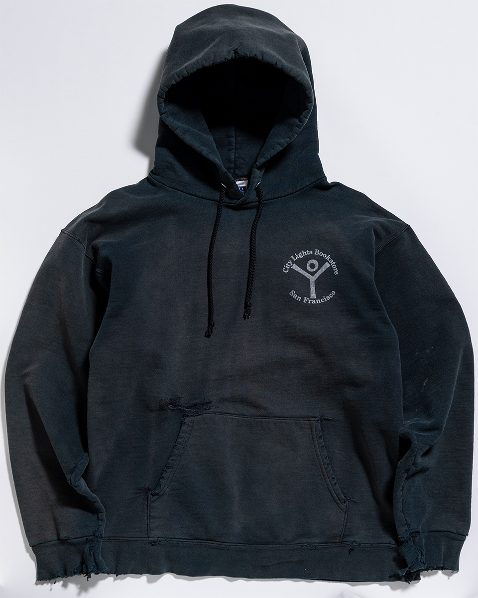 アメリカ・サンフランシスコにある、カルチャーの聖地として知られる老舗の書店「City Lights Bookstore」のフーディー。絶妙なフェード感とダメージが魅力的。「これを着てた人は多分、路上で寝ていたのだと思います。それほどリアルなボロでかっこいいです」(コバさん)