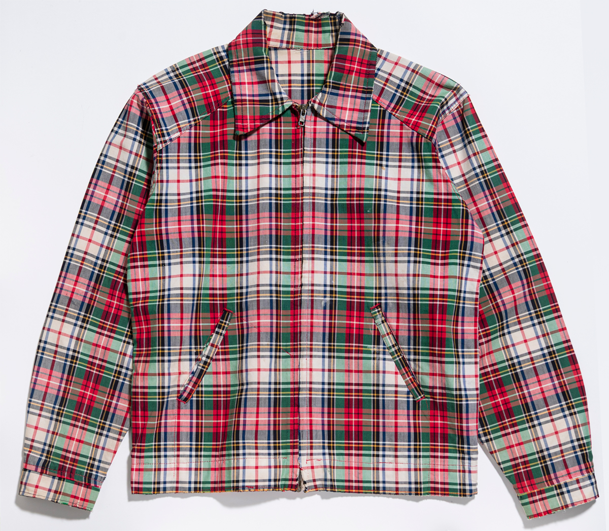 1950年代に製作された、ホワイト、レッド、グリーンの3色がかわいいブルゾン。ポップな柄に加え、女性でもジャストフィットで着用できるサイズ感が特徴。