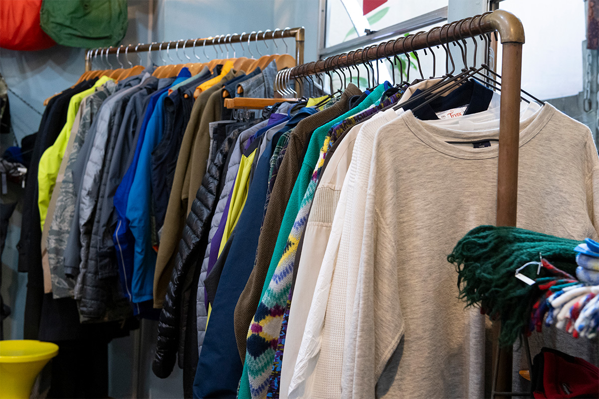 また、幅広い着こなしが可能なフーディーやダウンジャケットに加えて、お店の顧客であり、現代アーティストの渡邉太地さんが手掛けたオリジナルのグラフィカルなスウェットなども販売されている。