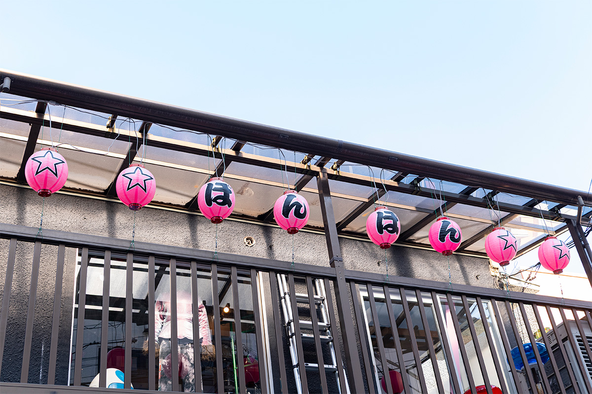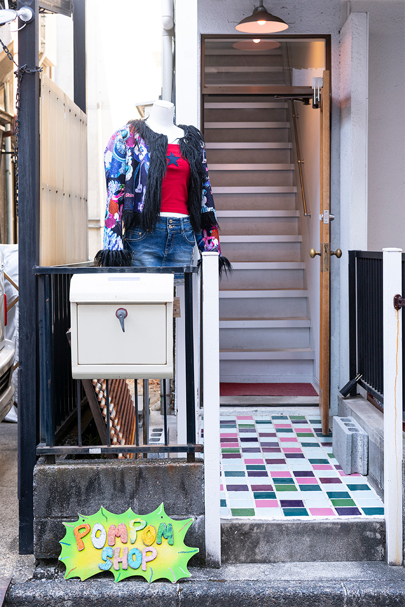 原宿駅から徒歩10分ほど歩いた静かな路地裏にある、独自の世界観が魅力のPOM POM SHOP。看板代わりに吊るされたピンク色の提灯が目印だ。