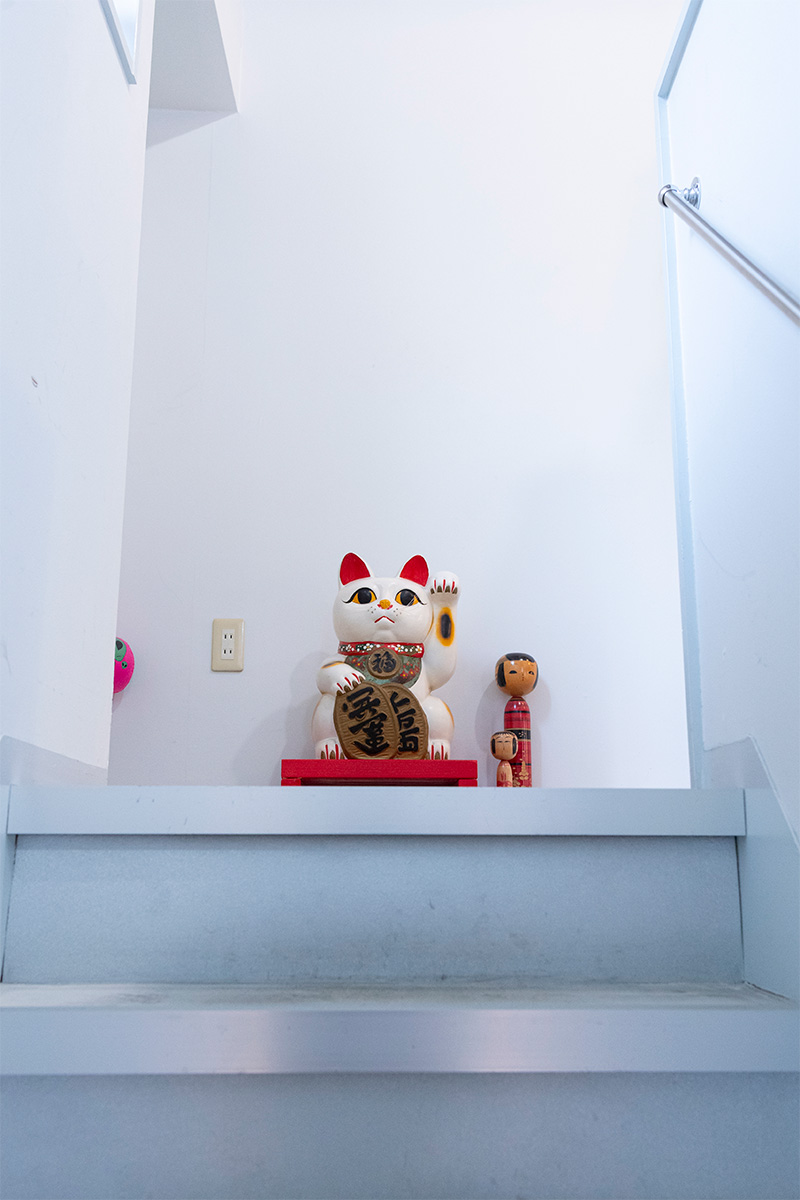 階段を上がって店内に入ると、大きな招き猫とこけしがお出迎え。和の要素と昭和レトロな雰囲気をミックスしたというポップでユニークな店内には、カラフルなアイテムが並ぶ。