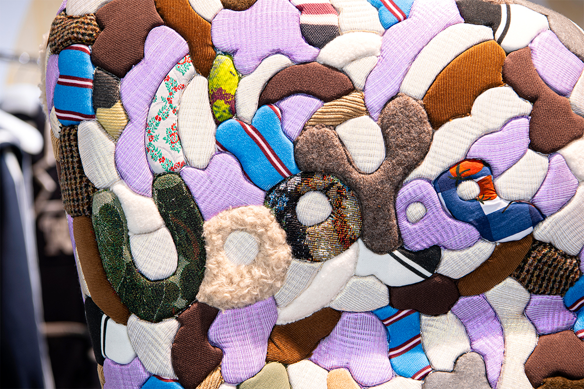 UOOYAAのファブリックは、一目見ただけで、丁寧にきちんと作られたものだということがわかりました。そんなファブリックの魅力が伝わるよう、見た人が思わず触れたくなる作品を目指して制作しました。また、リボンの形には、UOOYAAのクリエイションに潜む遊び心を反映し、チャーミングなイメージを託しています。