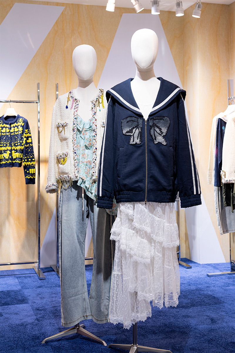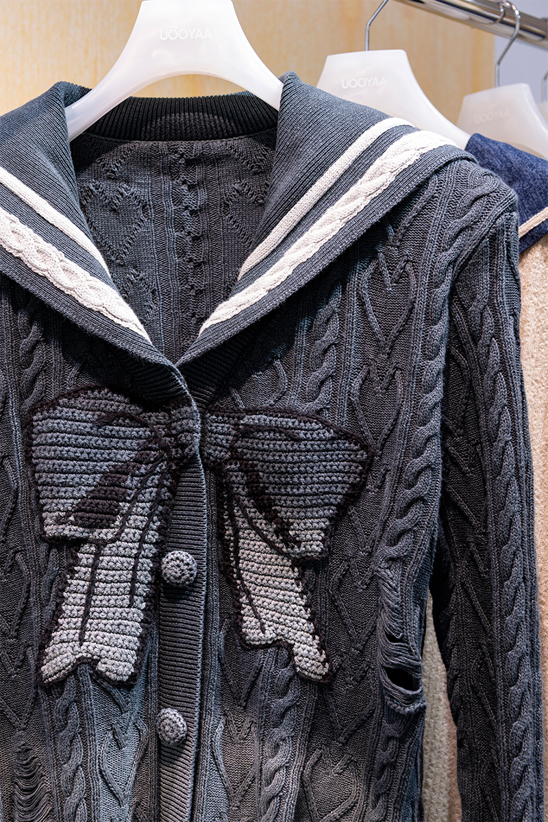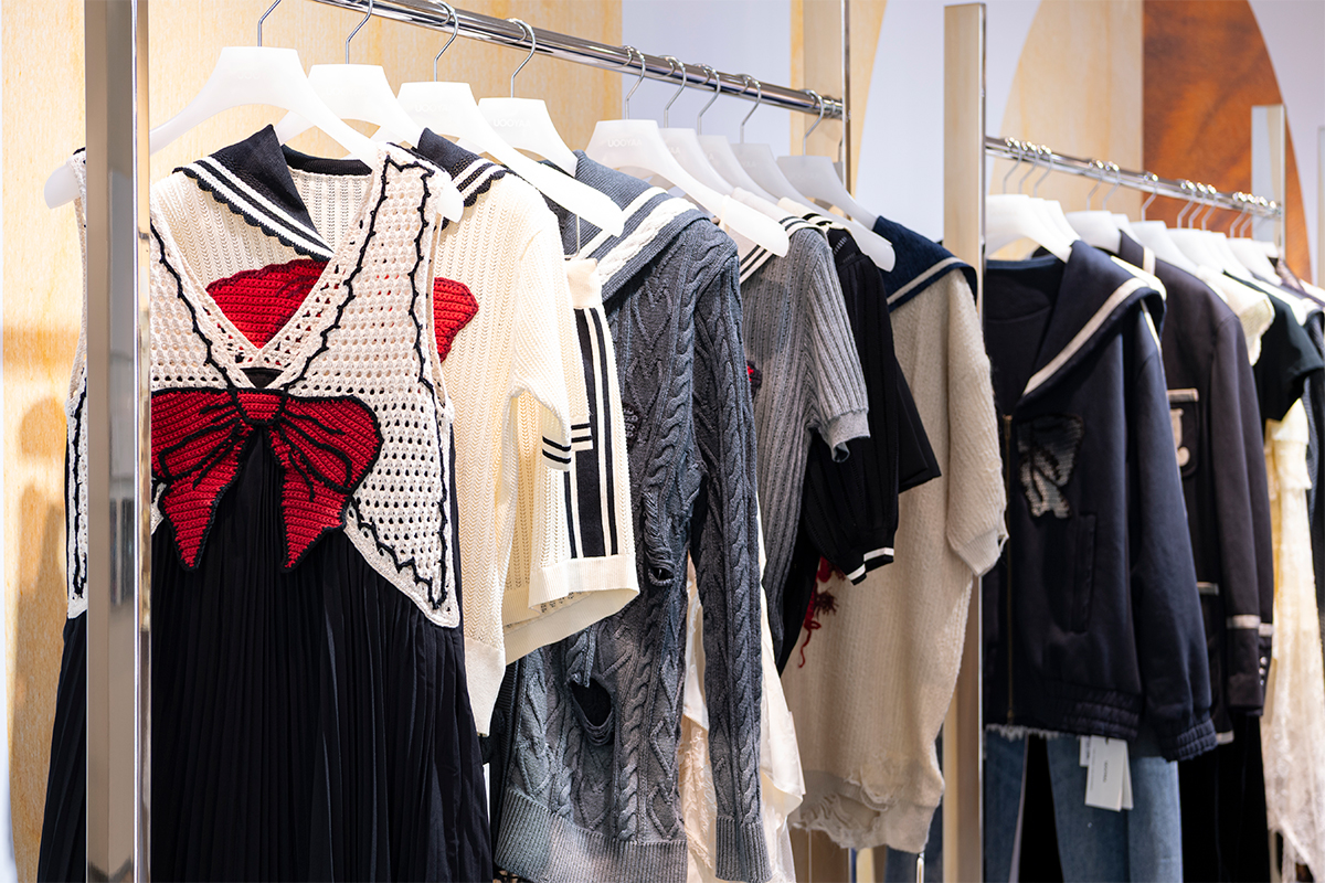 10月4日、東京の「ラフォーレ原宿」にオープンしたUOOYAAのポップアップストアは、2026年1月31日(土)まで展開される。中国の生産背景を活かした、精緻な手仕事を感じさせるビーズ刺繍のカーディガンや、レイヤードに活躍しそうなレースのワンピース、ストーンつきのワイドデニムパンツ、カーディガンの全面にくまのぬいぐるみを配したインパクト充分なカーディガンなどの人気アイテムが並ぶほか、リボンをテーマにした原宿限定アイテムも販売。