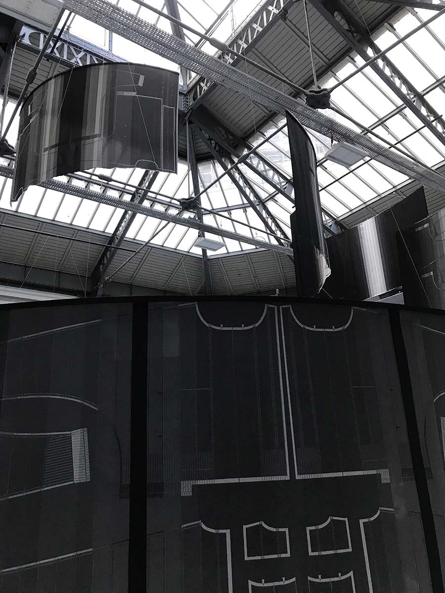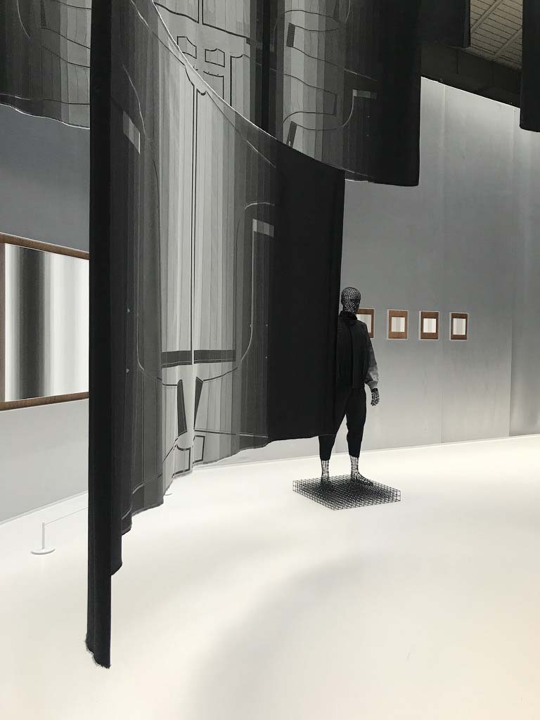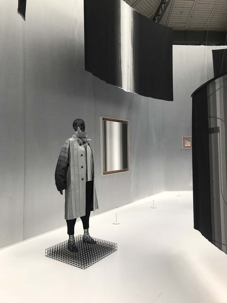 会場には、そのテキスタイルで作られた複数のアイテム「TYPE-XIV」も展示。インスタレーションのデザインは、パリを拠点とする建築家の田根剛(たね・つよし)が手がけ、光と影が織りなす没入型の空間が来場者を迎えた。