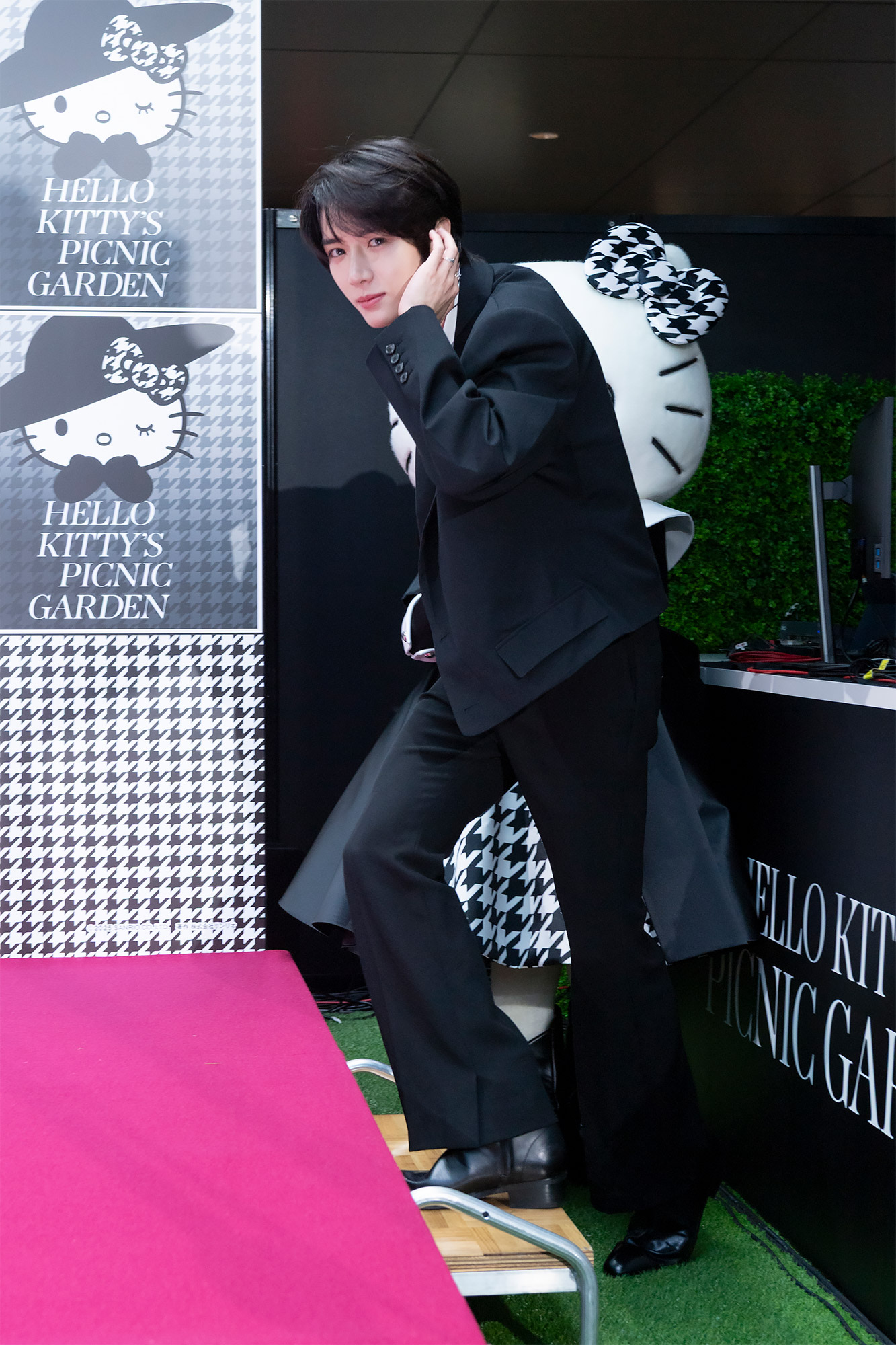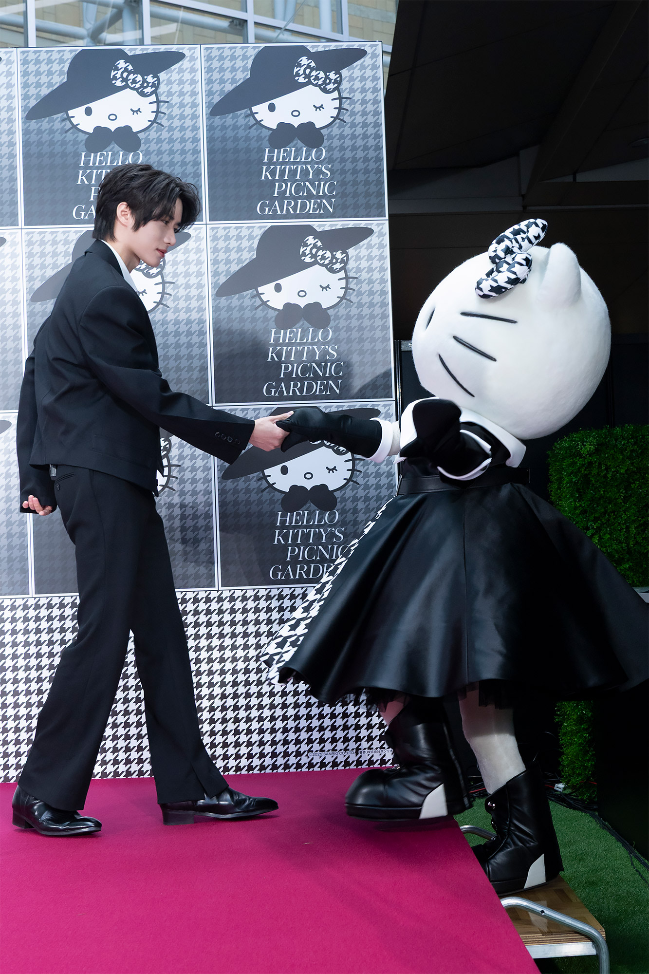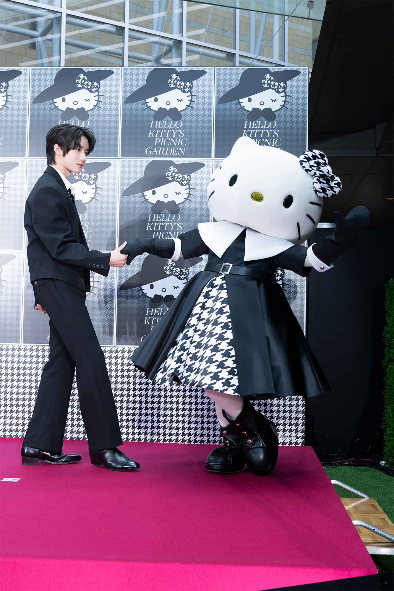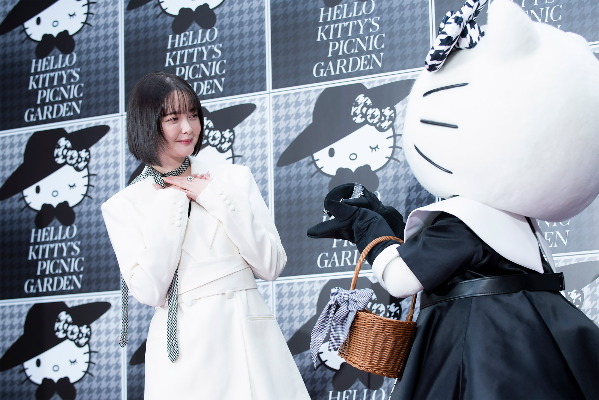 実際にハローキティに会った感想を聞かれたボムギュさんは「キティちゃんにこんな風にお会いできて本当に夢のようです」とコメントし、玉城さんは「本当に嬉しいです!キティちゃん可愛い~」とお揃いの千鳥格子柄を見せ合う可愛らしい場面も。