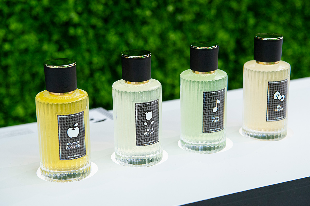 また、ハローキティからボムギュさんと玉城さんにプレゼントをした2種の香りのほかに、果実のフレッシュさにほんのり甘いバニラの香りが組み合わさった「ママが作ったアップルパイ」や、マリン系のみずみずしい香りが特徴的な「雨上がりのピアノの音色」といった計4種類の香りを楽しむことができる。