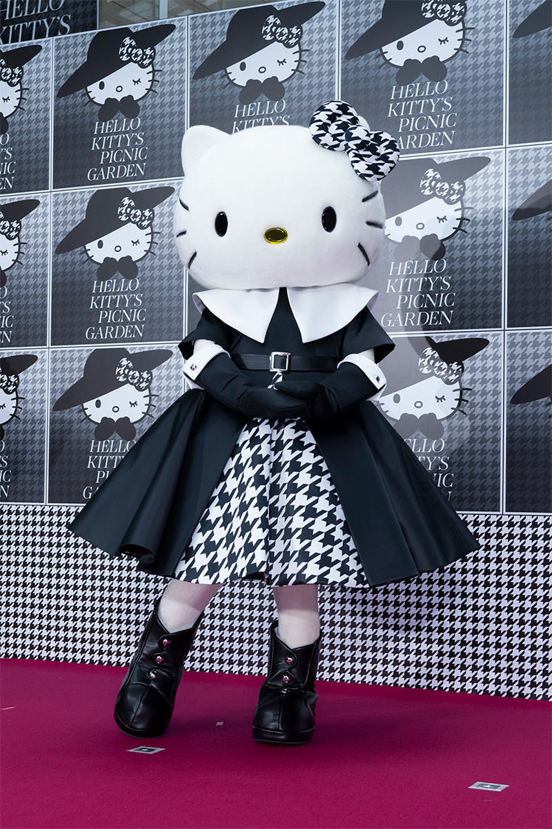 「今日は特別な日なのでオシャレをしてきました!」と話すハローキティは、千鳥格子柄とブラックのサテン生地のワンピースで大人な雰囲気を身にまとったハローキティ。ワンピースの裾を艶やかになびかせ、スペシャルな装いを披露した。