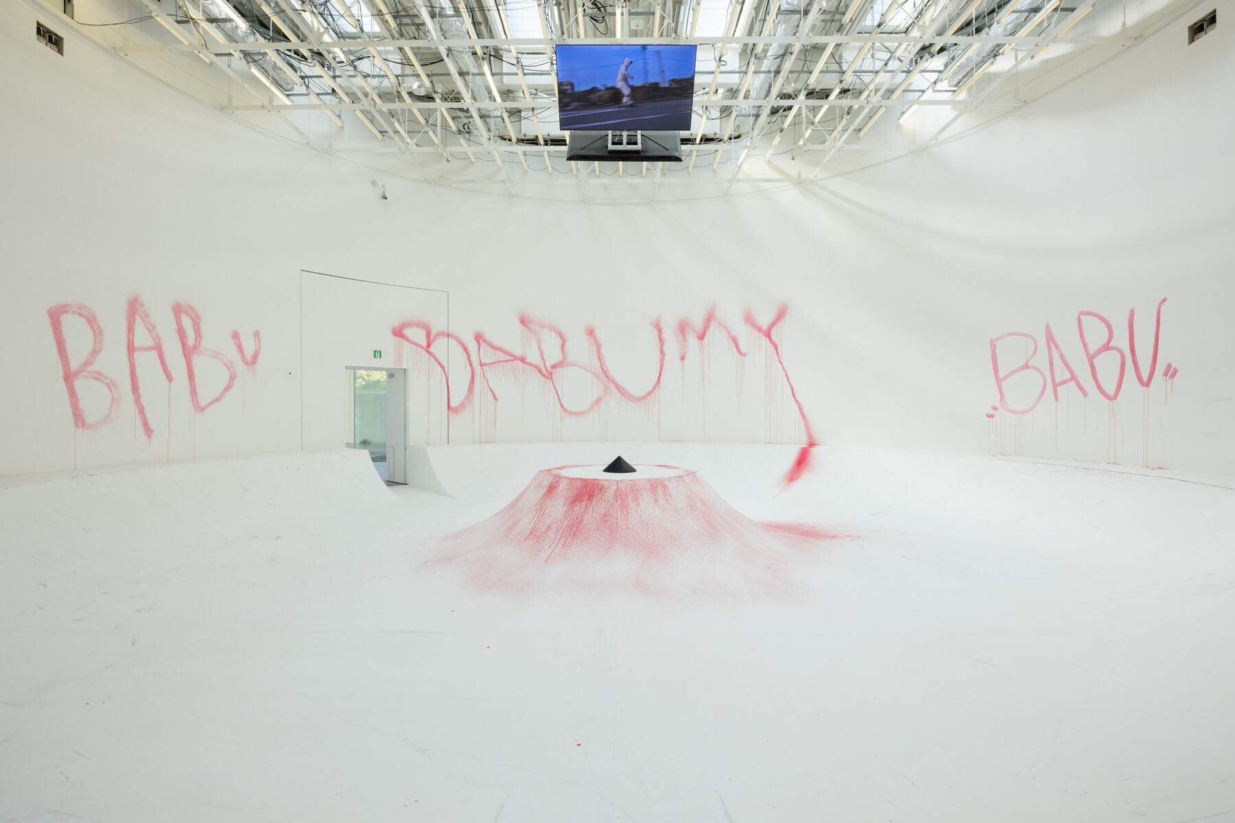 会期中、閉館前の1時間、誰でも自由にスケートすることができる。使用にあたって明確なルールは設けておらず、スペースをどのように使うかは利用者のモラルや自主性に委ねられる。《PLAZA》(2025)と題された本作では、美術館内にPLAZA(広場)を作り出し、自由な行為と滞在が生む関係性そのものを展示している。