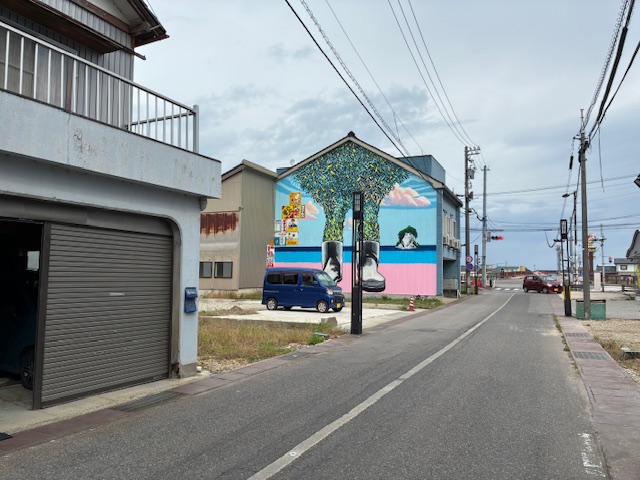 被災した珠洲市に残った建物の壁面に描かれたスティーブン・ESPO・パワーズの作品