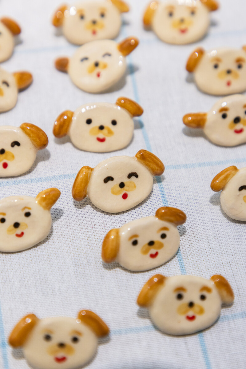イラストレーター/セラミックアーティストとして活躍するmycoroさん。もともとイラストレーターとして犬を多く描いていたが、犬好きが高じて立体的な陶器作品も手がけるようになったのだとか。ほがらかな表情のわんちゃんのオブジェは、部屋に飾るだけで日常を明るく和やかにしてくれる。