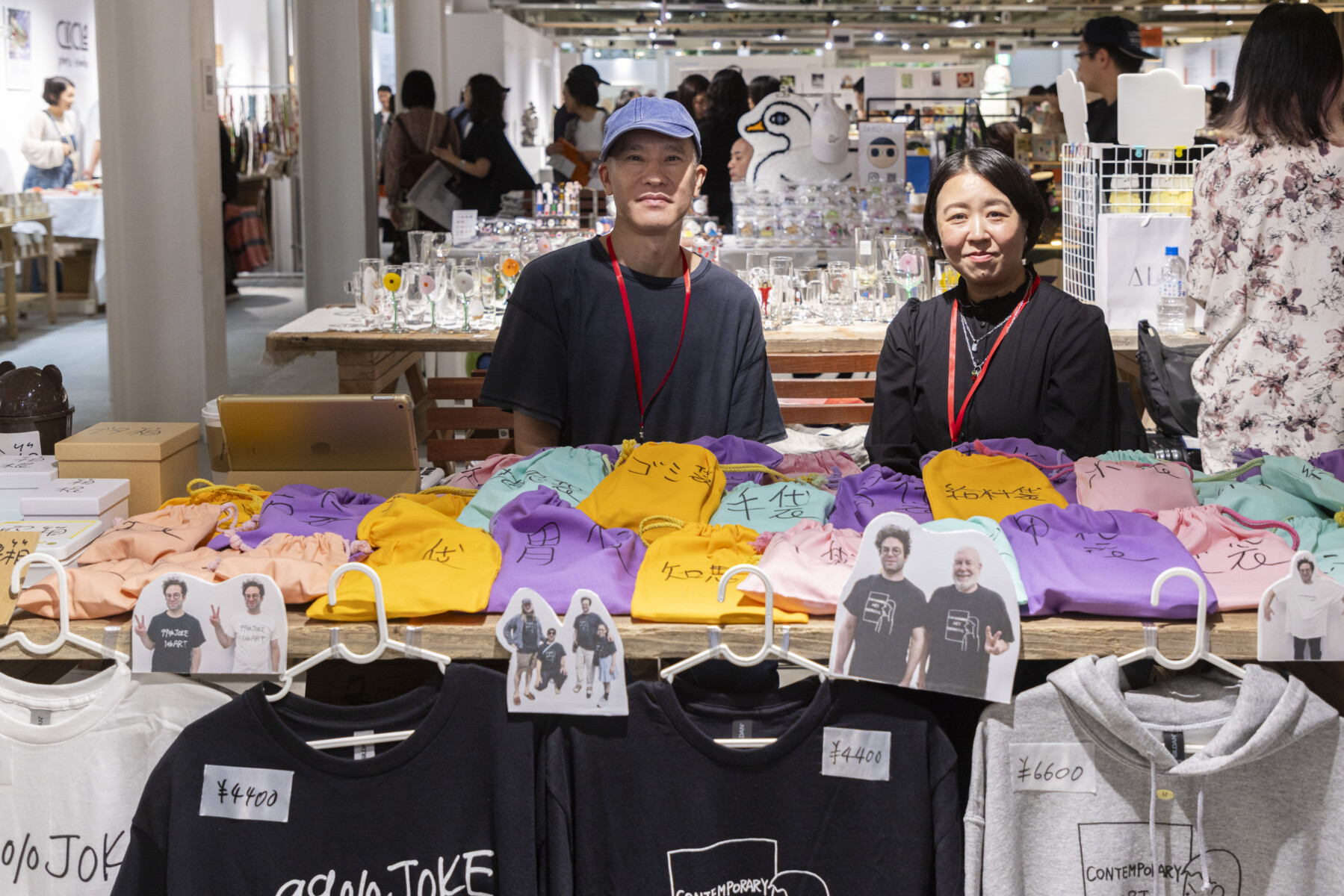 左・モンチッチ50周年を祝した「RE:MONCHHICHI」ブース。右・会場にて、オリジナルアイテムを販売していた現代アーティストの加賀美健さんとアートギャラリー「MISAKO&ROSEN」のオーナー・ローゼン美沙子さん。