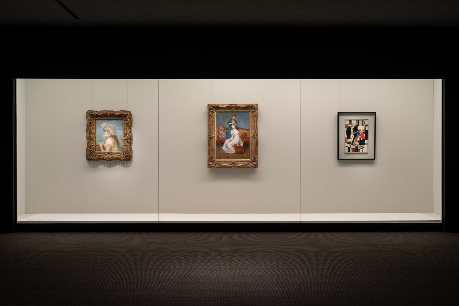 (右)展示風景 左:ピエール・オーギュスト・ルノワール《レースの帽子の少女》 1891年 中:ピエール・オーギュスト・ルノワール《髪かざり》 1888年 右:フェルナン・レジェ《鏡を持つ女性》 1920年 Photo: Ken Kato