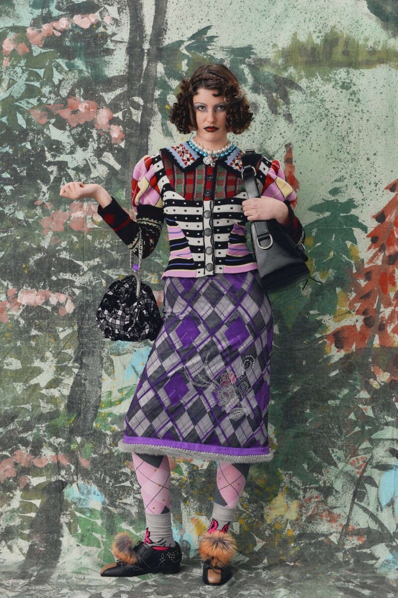 エマ:’26年秋冬のパネル柄のカーディガンは、エドワーディアン期、リージェンシー時代のストマッカー(stomacher)を参照しています。このパネルは私たちにとって非常に特別で、この形を取り入れたかったんです。高い位置のパフスリーブにタイトなウエストで。