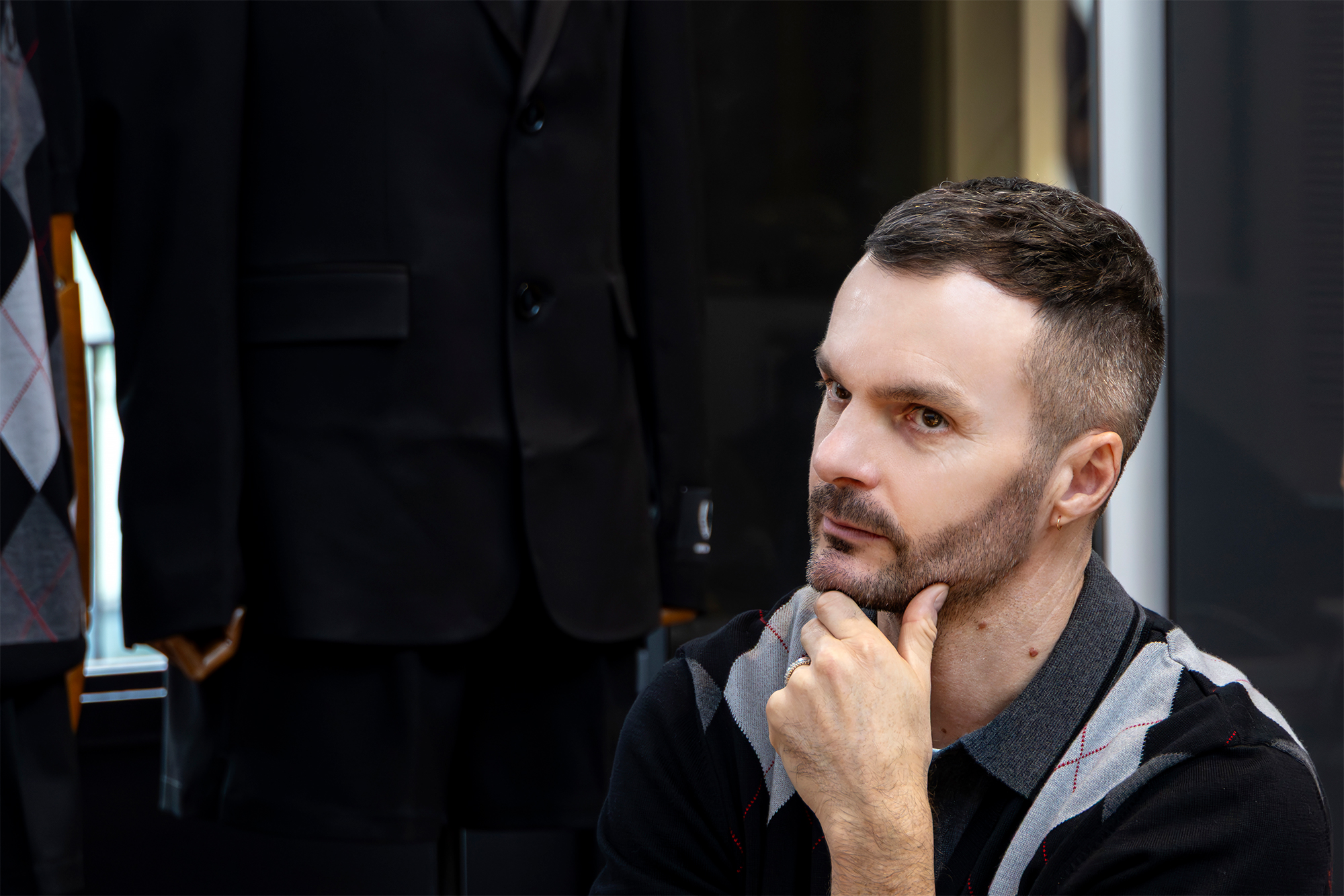 クリス:偶然にも最初の仕事がメンズウェアで、そこからキャリアをスタートして25年経った今もメンズウェアを手がけていますが、実はアカデミーではウィメンズウェアを学んでいました。将来的にはもっとウィメンズウェアをやりたいと思っています。