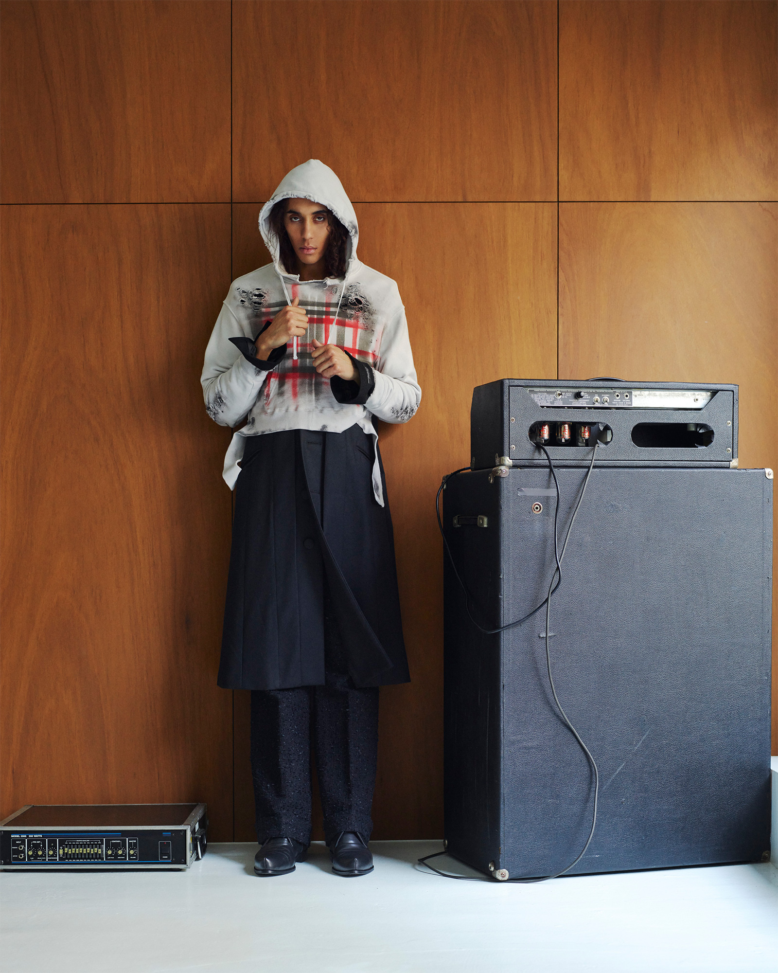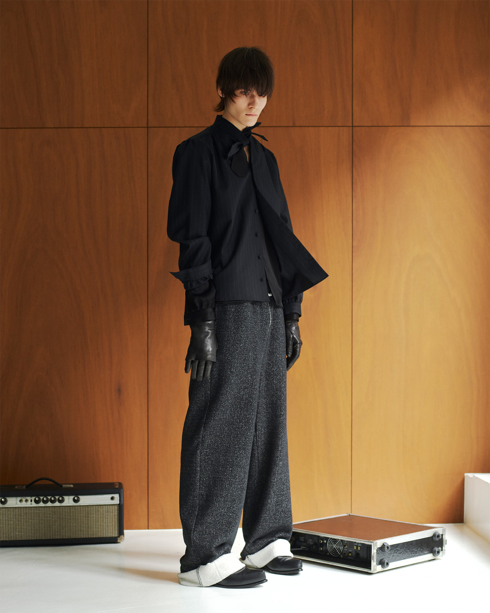 パクティン:ORIMIというブランドには、どんなテーマであっても揺るがないコアなDNAがあると思っています。一つは、折見さんが1990年代後半〜2000年代初頭の日本のファッションシーンを熟知していること。そしてもう一つは、彼がロックンロールミュージックを深く愛していることです。スタイリングをするとき、私は常にこの二つの要素を心に留めています。