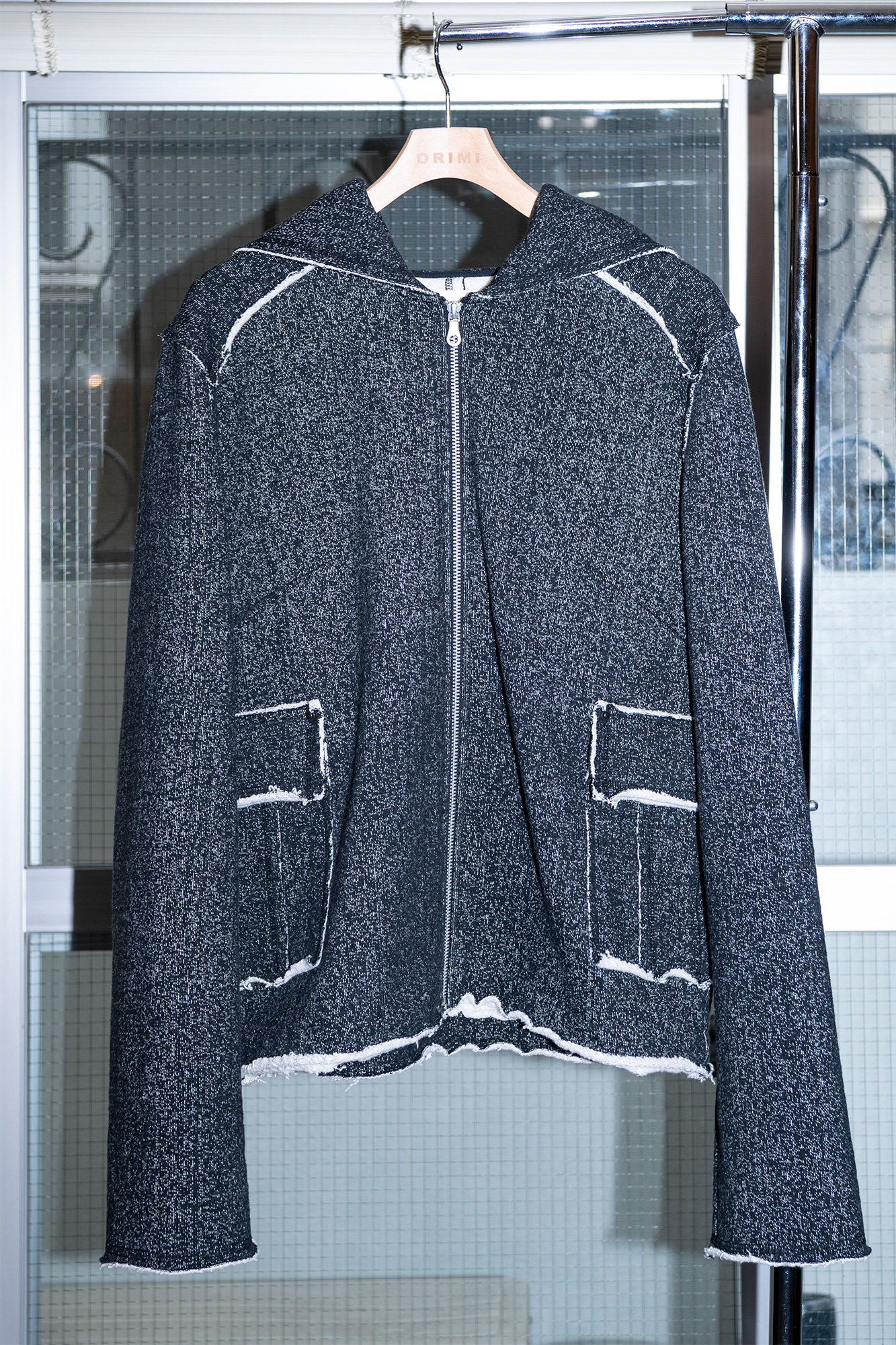 今シーズンはそれに加えて、彼が「日常的なワードローブ」や「よりウェアラブルなもの」を重視している点が非常に興味深いと感じました。ORIMIの春夏と秋冬は常につながっていると考えているので、前回の’26年春夏コレクションとの関連性も意識しました。前回登場した、肌を見せるセクシーなルックにはスウェットパンツを合わせるなどして、よりカジュアルでデイリーな要素を加えています。