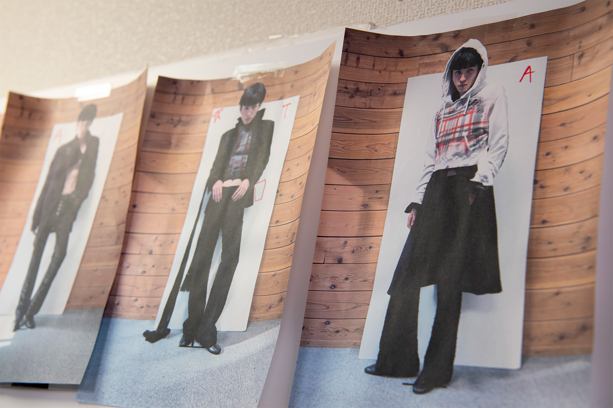 折見:今回もWhatsAppでたくさんやりとりをしました。まず僕がやりたい大まかなコンセプトを文章で送り、キーワードとして「クラシック」「エレガント」「メランコリー」といった言葉も伝えました。洋服の企画書や構成のリファレンスもあわせて送ると、彼からたくさんのリファレンスが返ってきて、そこからイメージのキャッチボールを重ねていきます。パクティンに日本に来てもらう前にある程度の方向性を固めておき、来日してからさらにイメージを伸ばしてもらったり、変更したりしながら制作を進めました。