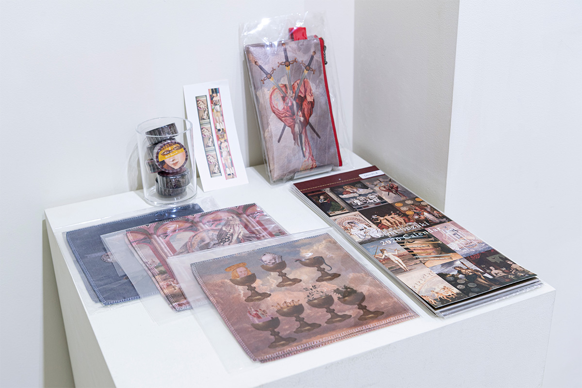 今展のタイトルは「Pale Weight」。“淡い”と“重み”という、相反する言葉を名付けました。「目には見えづらいが、確かに存在し、心や身体に静かに作用してくる重み」を示唆しています。ギリシャ神話の三美神(カリス)をアイコンにした新作が象徴するのも淡く、しかし深く根ざす力です。静かに鑑賞していただけるような作品を目指して、全体的に優しいダスティーピンク(スズキさんを象徴する色から、ファンの方からエイミーピンクとも言われる)を主にしています。