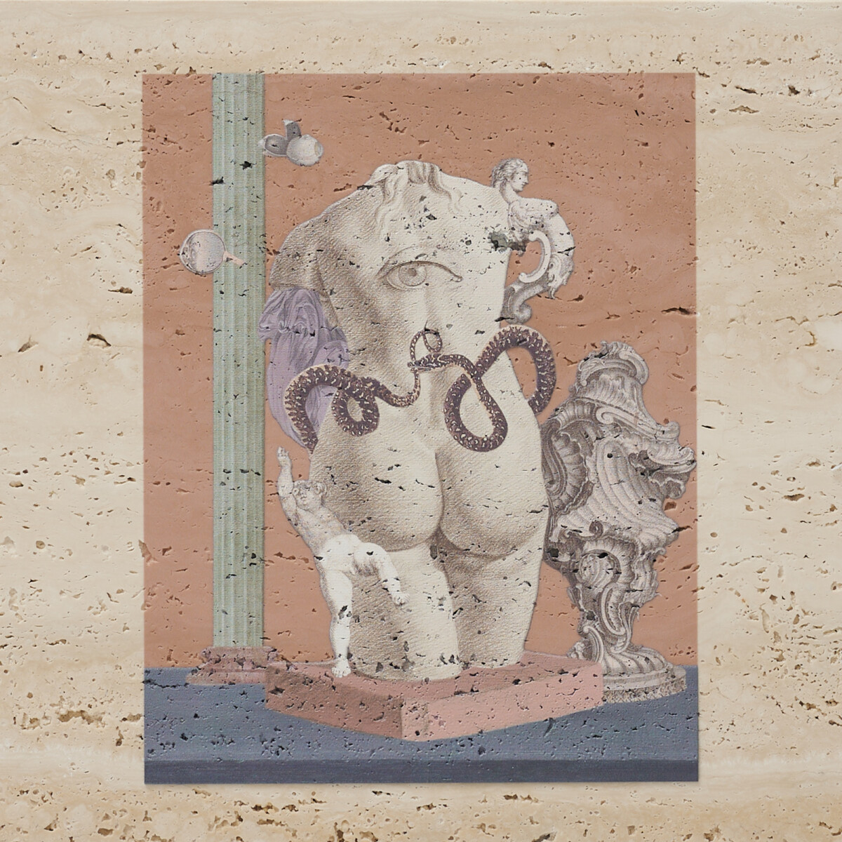 Eimi Suzuki●現代美術家・ジュエリーデザイナー・マルチアーティスト。生や偏見、祈りをテーマとし、古典美術を現代に落とし込んだコラージュにペインティングを組み合わせた平面作品を制作する他、金工作品やオブジェなども手掛ける。国内外での展示活動、アートディレクションやファッションブランドとのコラボレーションの他、活動は多岐に渡る。2022 年夏 ジュエリーブランド「eimiess」を始動。
