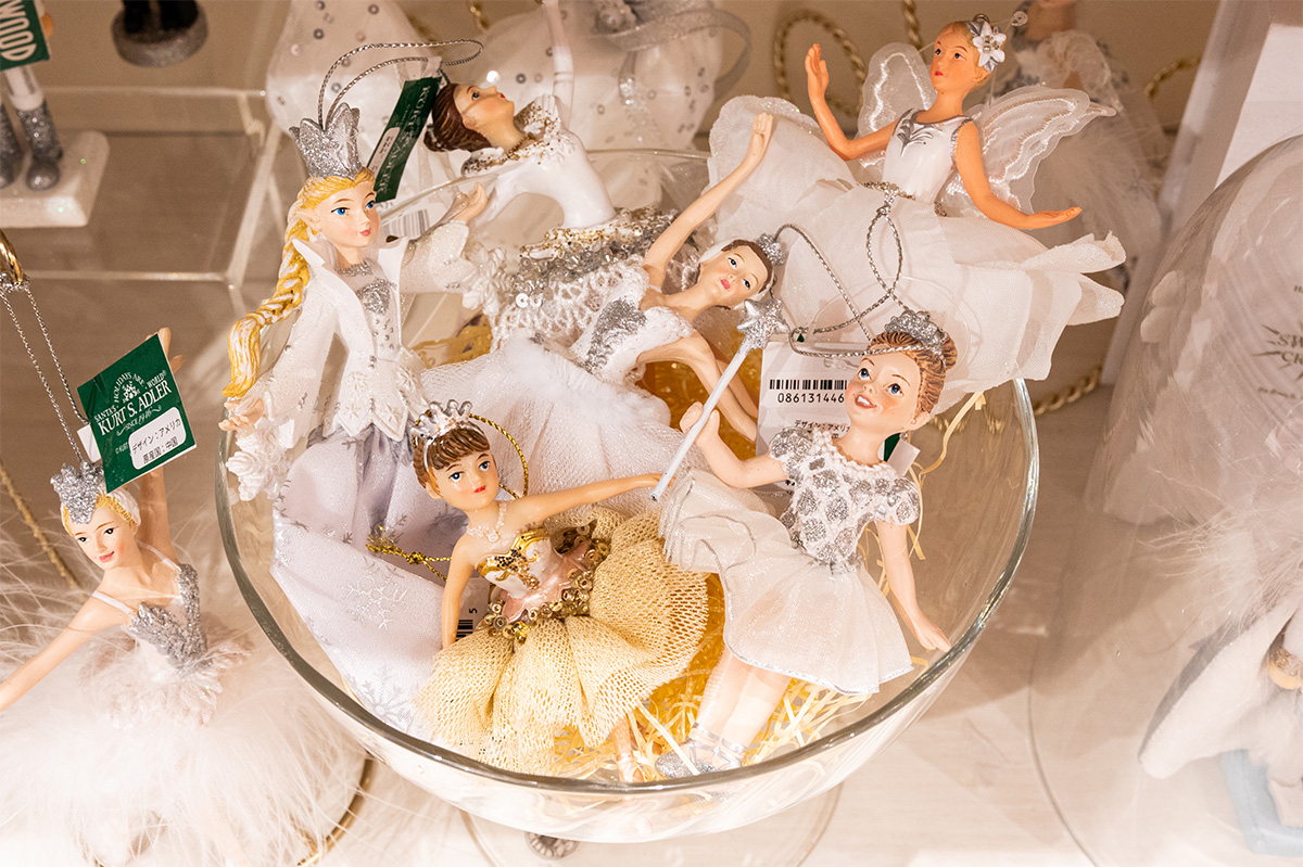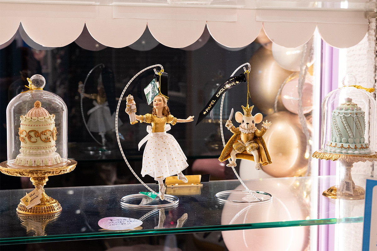 カーツアドラー製のクララ(¥5,940)とネズミの王様(¥4,400)のオーナメント。ゴールド×ホワイトはパペルでしか手に入らない限定カラー