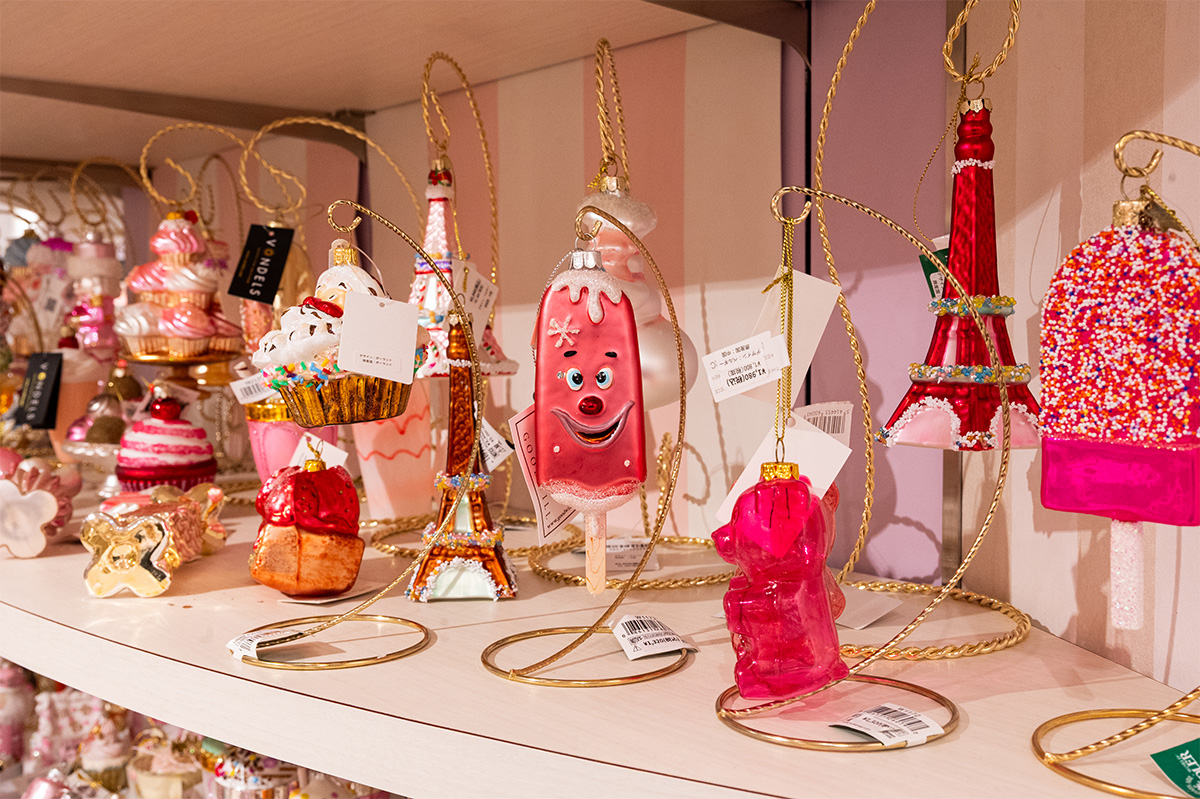 ベビーピンクを基調とした、可愛らしいスイーツモチーフのオーナメントが並び、眺めているだけで甘い気持ちに浸れる空間が広がっています。東京、大阪、名古屋、神戸でポップアップも開催中なので、一年を頑張った自分へのご褒美に、また大切な人への贈り物として、お気に入りの1点を探しに訪れてみてはいかがでしょうか。
