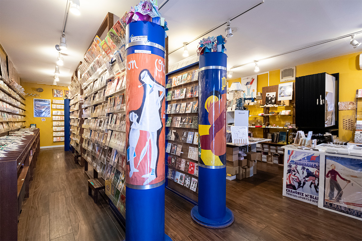 扉を開け中へ入ると、カードや雑貨がずらり!日本ではなかなか手に入らないデザインや、飛び出す仕掛けのカードなど、さまざまなグリーティングカードを取り扱うお店ですが、この季節になると棚いっぱいに華やかなクリスマスカードが並びます。