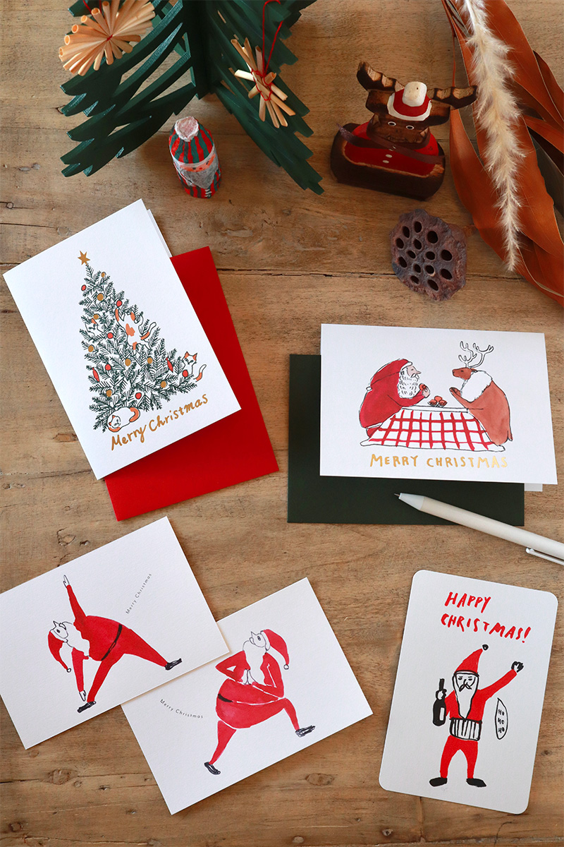 「ヨガサンタ」や「おじサンタ」のショップオリジナルポストカードをプレゼントに添えるのもおすすめ