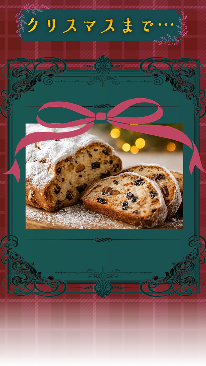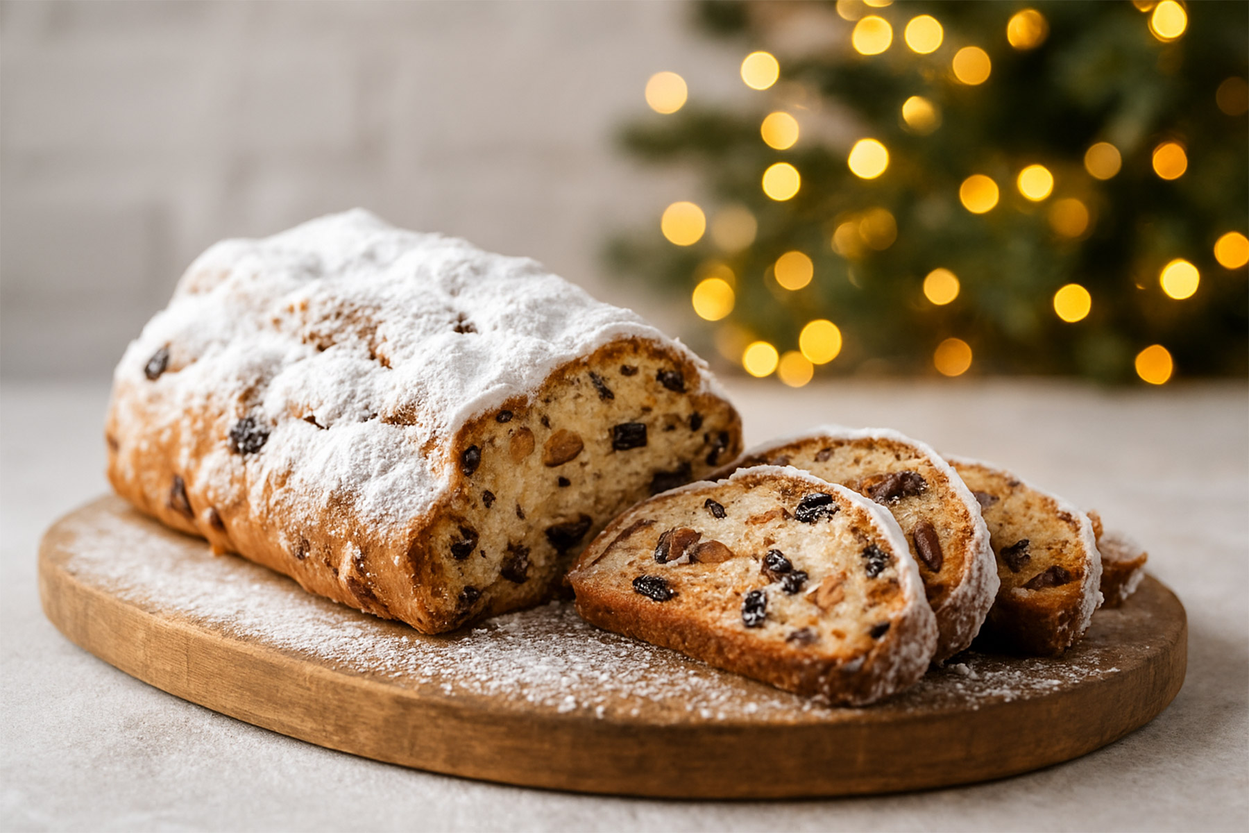 洋酒に漬けたドライフルーツやナッツを生地に練り込み、焼き上げたあとにバターと砂糖をたっぷり染み込ませるのが特徴。時間が経つほど風味が深まり、焼きたてよりも数日後、さらに1〜2週間後が一番おいしいともいわれています。そのため、薄く切って少しずつ食べ進める楽しみが生まれ、クリスマスまでのカウントダウン文化へとつながりました。