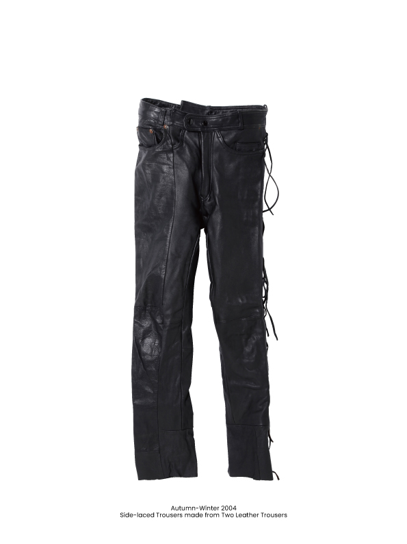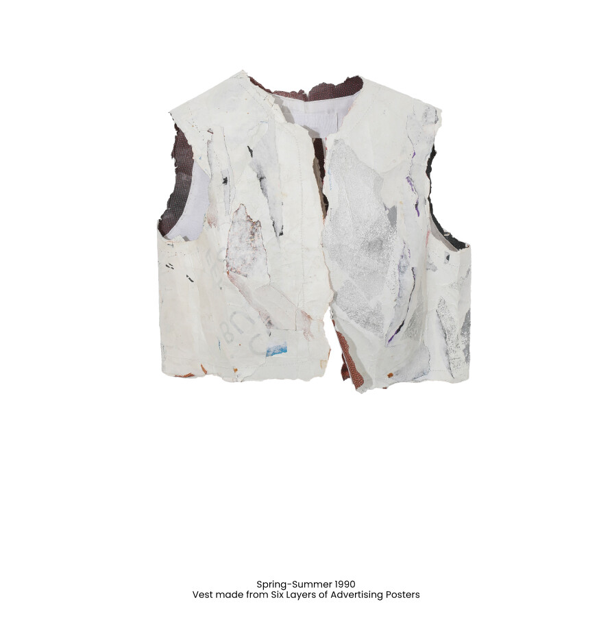 空軍のパイロットレザージャケットから作られたトップやパンティストッキングで仕立てられた袖なしドレスなど、既存の衣服や素材を転用した革新的な作品。また、広告ポスターから作られたベストや旅行バッグを再構築したジャケットなど、日常的な素材を高級服に転換する手法で、マルジェラの創造性の幅広さを示している。