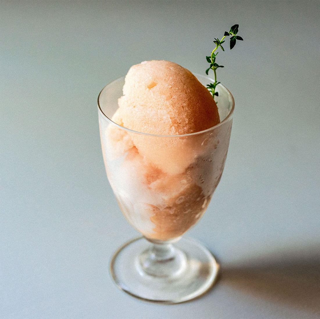 白ワインの風味を加えた桃のソルベは、すっきりとするので食後のデザートにもおすすめです。