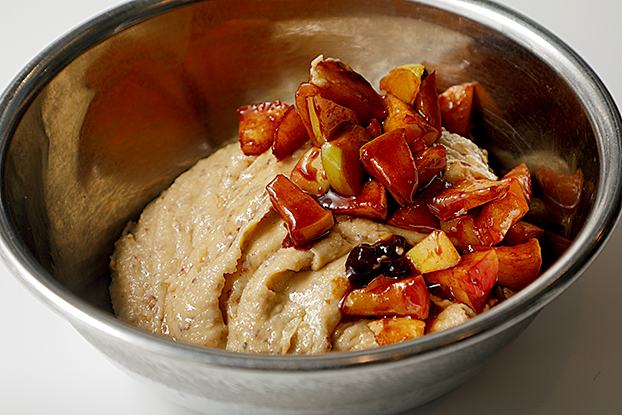 4 ボウルに移し、りんごソテーを加え、ゴムべらで底から混ぜ合わせる。