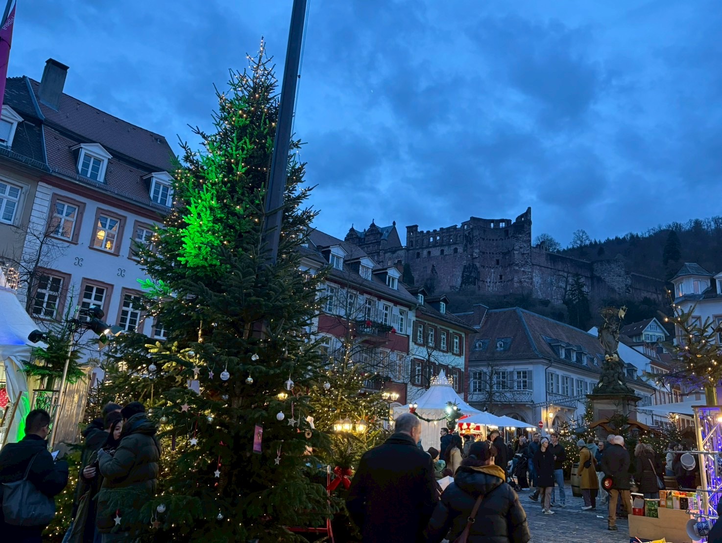 戦争の被害をほとんど受けず、中世の街並みをそのまま残している街、ハイデルベルク。クリスマスシーズンは街中が華やぐことも相まって、特に美しいクリスマスマーケットの一つとして知られています。